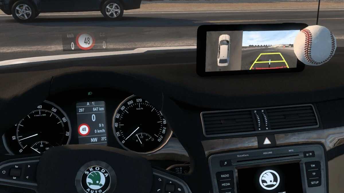 CHANGES V.6: Fixed and fully adapted to version 1.47. Everything works properly Getting ahead of one of the changes in ets2 V.7, fixed the color in the mirrors of the gps cameras. 4 new exhaust pipes as accessories. Aluminum roof bars as an accessory. Engine consumption adjustment 2.0 tsi. Taxi badge as an accessory. The rearview camera combined with 360 camera and front night vision camera as new accessories (for all versions). FEATURES: Fully animated (added animations in interior and exterior windows, gear lever, windows buttons, gps, accelerator, brake and clutch pedals, low air pressure) Multiple cabin accessory brackets. Wide variety of objects. Two onboard computers, one for the standard version and one for the exclusive version. Both computers have all the functions that allow the support of the game Rebuilding the speed limit on the on-board computer screen. It is now independent of gps, and does not mark the black square in the old boundary, contrasted with the display of the onboard computer. Each gps has different screens that faithfully reproduce the gps of a real Superb Skoda. The same realism applies to the succession of different screens. Head-Up Display as an accessory for all versions. The hologram recreates the HUD of the latest real versions of the Skoda Superb Two types of dashboard lights (standard and exclusive) Realistic specifications (weight, consumption, air pressure, battery voltage…) Real Skoda logo (steering wheel and exterior) Skoda badges at the rear of the vehicle Added 2.0 Tsi engine with its own sound Adapted the weight of the caravan to keep it from trembling at high speeds Credits MPTruckers, Edsor Credits: MPTruckers, Edsor |