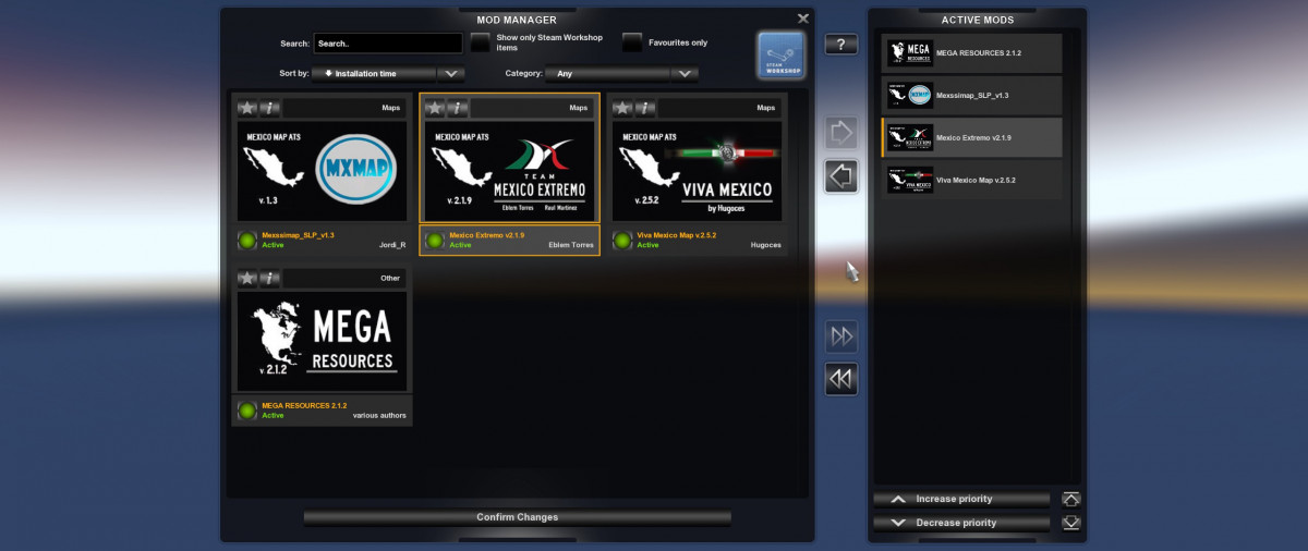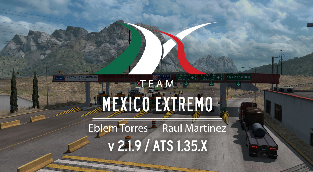 Mexico Extremo 2.1.9 Aguascalientes is avalaible, which includes; Changelog for 1.35: -Map updated to version 1.35.x for ATS, which includes all upgrades such voice GPS, new visuals, etc. -Map working with DX11 (same as DX9) -Major improvements in landscaping over the states of Aguascalientes, Zacatecas and Durango, you really need to travel again the roads! -Included new graphical improvements such as better reflections on the pavement, water, different use of textures, new textures from Washington DLC -New custom tollbooths, thanks to SIRIO and RaulMtz for the new models. -New mexican bridges, close to real Mexican bridge, more realism, no crash bug over the bridges. -Remodeled Durango-Mazatlán highway with the new bridges and landscape. The same route was several optimized. -Tollbooth real prices. -General optimization of the entire project. Although some few areas might receive drops on FPS, main cities should be fine and many heavy areas in the mountains still will be working on a future version for more optimization of the map without losing quality. -Fixed bug where escort police car disappears in a special transport route from Aguascalientes to Zacatecas -Fixed bug where you couldn't unload in Guanacevi mine. -Fixed weather effect under bridges and tunnels, no more rain in tunnels. -Fixed some road sign text. -New areas for sleep and load gas in the map. -Better tracing and several improvements over highway 45, between Fresnillo-Durango, go see it again. -Better handling of AI traffic in certain points (thou still need to fix some minor areas) -Functional Kenworth truck dealership in map. -Correction of flying objects, holes and other small visuals in map. -Grass on pavement overall correction -Fix of several issues and errors reported in the last 3 months. -Major changes in Mega Resources file for optimization, fix of signals, compatibility with any other mod (such as C2C) -Fixes prefab in Walbert in Everett, WA (not present in MegaRespurces) -Fixes some SCS signs (such as wrong position, the color of signs, etc), no more SCS sign replacement in Mega Resources file. -Fixed hole in Yuma, in Viva Mexico map file (please replace the old file with this new one, with the same name). -Fixed map background in VM and ME so Washington state can appear labeled. -Fixed some minor issues in Mexico Extremo map, such as holes, an invisible wall, water level error, overlapping trees, etc, reported by the users. -More optimization in cities, especially in Parral. NEW MEXICO DLC NEEDED OREGON DLC NEEDED OTHER MODS NEEDED Credits: Eblem, Raul, Hugoces |
