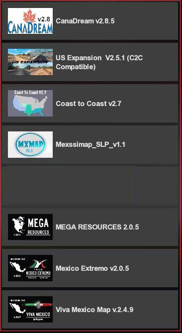 Changelog v2.8.5 Fixed pillars standing in the middle of the road Fixed a fence in the middle of the road Invisible Walls Fixed Bugs fixed Changelog v2.8.3 This update includes Montana Expansion by ReconLobster Added Southern Utah. Also added Bluff, Utah. Changelog v2.8.2 Bugs fixed This version requires WA,OR & NM DLC. Changelog v2.8.1 Bugs fixed Changes 2.8: Compability with DLC Washington C2C v2.8.5 for ATS v1.35. Features: DLC New Mexico & Oregon, WA required Download .scs file then activate it in the Mod Manager Author Mantrid Mantrid – Lousiana completely rebuilt ShirBlackspots – Texas improvements Ways71 – Various scenery improvements along I-95 Credits: Mantrid |