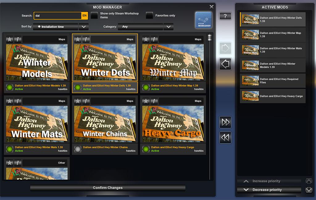 Changelog Added in Pump Station 1 and Flow Station 3 going towards Nuiqsut from Deadhorse/Prudhoe Bay. This wasnt quite ready for release yet however due to an issue with Western Star Truck Dealer in Fairbanks I have had to release early. If you decide to go any further down the road exploring be warned it is not blocked off down there and is not finished by a longshot. As I am now using some models from Colorado DLC this is now required with this update as well as all previous map DLC's. Sorry for the lack of warning but the Kenworth/Western Star bug took a priority there. There is a security gate at the beginning of the entrance to the road to the oilfields and Arctic Ocean. This is there irl. Some new signs added. There are now Deer and Moose on the Dalton. Beware they might cross the road looking for food in some places. Fixes. Moved Western Star Truck Dealer from Fairbanks to Farmers Loop due to an issue that caused Kenworth to think it was Western Star. Farmers Loop reworked to accomodate. This is at the top of the hill coming out of Fairbanks where the Sourdough Truckstop is. Fixed as many errors as I could find. Cleaned up some terrain issues. (This is a never ending process.) Changed some parked vehicle models due to shadow issues. Files have been Renamed to reflect version number Please DELETE any previous versions of all Dalton Winter Files to avoid conflicts. As well as Required Files and Heavy Cargo. Always use the latest files contained in the archive incase of updates to them. Credits: Hawkbs, Piva, Nico, FLD |