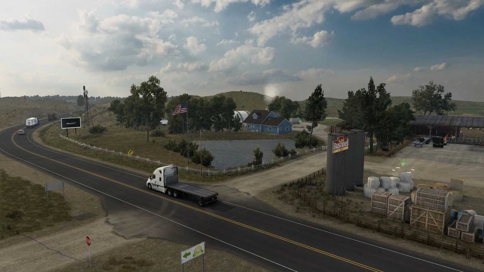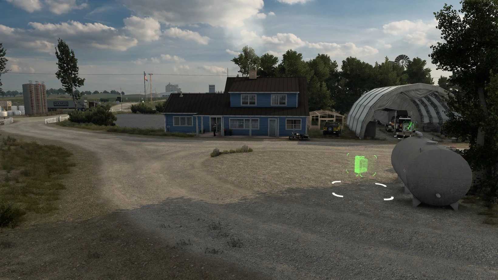 | Located in Havre, Montana this farm features three job locations and a buyable garage. The three jobs are a Livestock auction, Crop farm and a grain production facility.