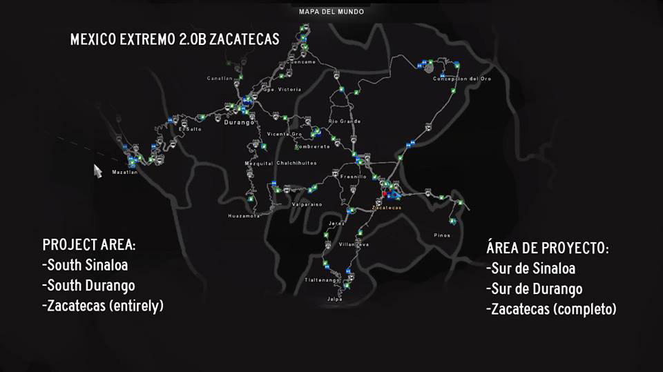 Changelog 2.0B; -Fixed terrain in many places of map area, such grass in pavement, trees in middle of road, bad terrain in road (blockades), black holes, etc -Fixes in Durango-Mazatlan invisible wall crash in bridges -No weather area in tunnels in Durango-Mazatlan. (shouldn’t rain anymore on tunnels) -Fixed invisible walls in potholes areas of the map. -Less and fixed potholes in Cuencame-Rio Grande highway -Some traffic rule corrections in certain areas, proper speed limits. -Some performance issues corrected in certain areas -Fixed few console bugs reported -Fixed some signal positions and proper use of signage in towns and highways. Trucking in Mexico is never as straight forward as in the US. Experience windy and dangerous roads, questionable conditions, road blocks, speed bumps and the ever satisfying beauty of the Mexican landscape, all from the comfort of your home. Map location in the manager: HBS RESOURCES 1.8 México Extremo 2.0B Viva México 2.4.4 The map is compatible with all map mods including CanaDream and Coast2Coast in the actual version (1.31.x). Requires DLC New Mexico, requires Viva Mexico 2.4.4 NOT OPENGL compatible (not for MAC user or Linux), only DirectX. Inside the site, there is download file for both HBS Resources 1.8 ad Mexico Extremo 2.0B in a zip, also Viva Mexico 2.4.4 individually. Please support me at paypal.me/eblem, thank you! Enjoy! Credits: Eblem Torres, Raul Martinez Credits: Eblem Torres |