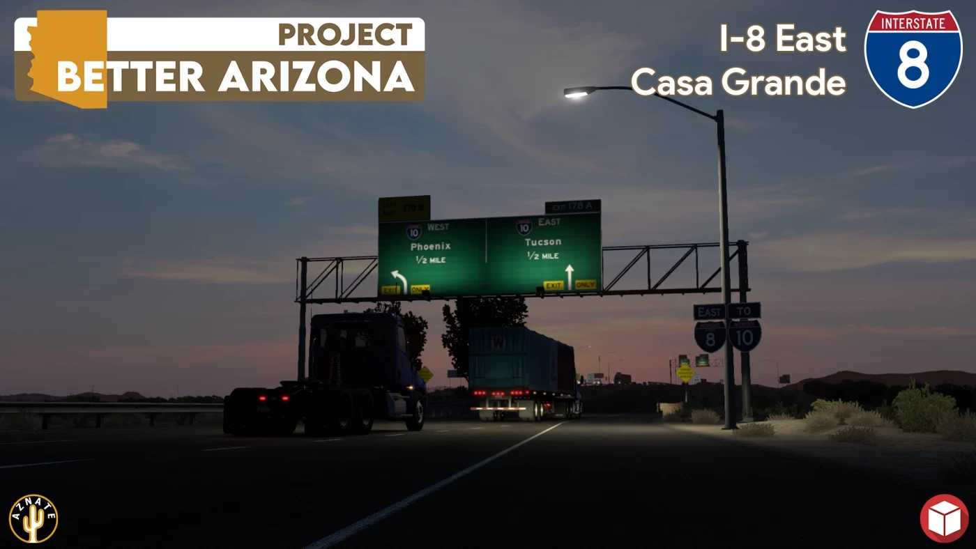 Better Arizona is a map mod project for American Truck Simulator that aims to improve existing cities and add new towns and roads to the state of Arizona in the game. v0.2.2 2022-11-28 – ATS 1.46 compatibility – Updated Arizona welcome sign on US 70 – Fixed a bunch of terrain gaps and other visual bugs Supported Game Versions: 1.46 Credits: aznate Credits: aznate |