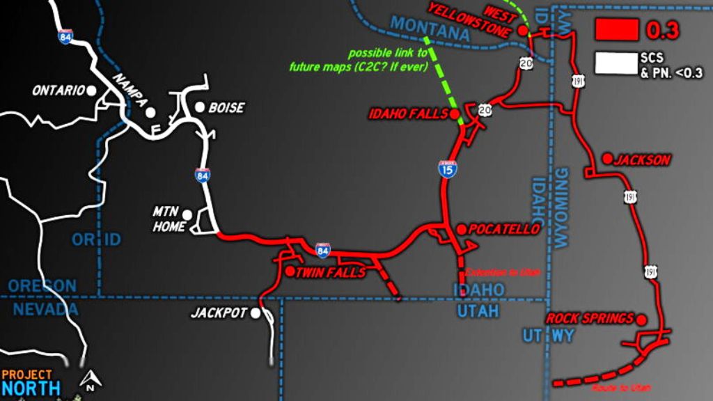 Pacific Northwest region. This is the first version of the new map for American Truck Simulator-Project North West (Idaho). At the moment there are 2 cities on the map: Boise Nampa And many roads with different road junctions and beautiful scenery. Requires all DLC (Arizona, new Mexico and Oregon). The map was built in DX11, so it is better to run the game in this format (DX9 also works). Map "Project North West (Idaho)" version 0.2.3 for American Truck Simulator (v1.35.x): - Numerous bug fixes; — Fixed junctions,discontinuities of the terrain; - Removed invisible barriers; - Added connection in Boise area. Credits: DuckieBae |