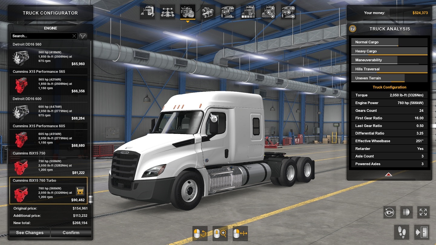 Transmissions, chassis and engines now for all trucks. 1.1 Now includes International LT for 1.43+ 24 Speed AmTech Custom Built Transmission for all trucks - High fuel econemy First gear 16.00, Last 0.50 +Retarder High power Cummins ISX15 750 for all trucks - Heavy hauler, low economy Horsepower 750 - Torque at 1200 RPM 3282 RPM max limit 3000 - 2500 for 49x, Lonestar, Cascadia, LT RPM auto shift 2600 high - 2400 for 49x, Lonestar, Cascadia, LT High power Cummins ISX15 760 Turbo for all trucks - High fuel economy Horsepower 760 - Torque at 1200 RPM 3326 RPM max limit 3000 - 2500 for 49x, Lonestar, Cascadia, LT RPM auto shift 2600 high - 2400 for 49x, Lonestar, Cascadia, LT Various chassis for all trucks with AdBlue tanks to support turbo engines with mods ranging from short, mid and long. 400-500-600gal, 4x4 6x6 8x8. Credits: MxmOvrDrv |