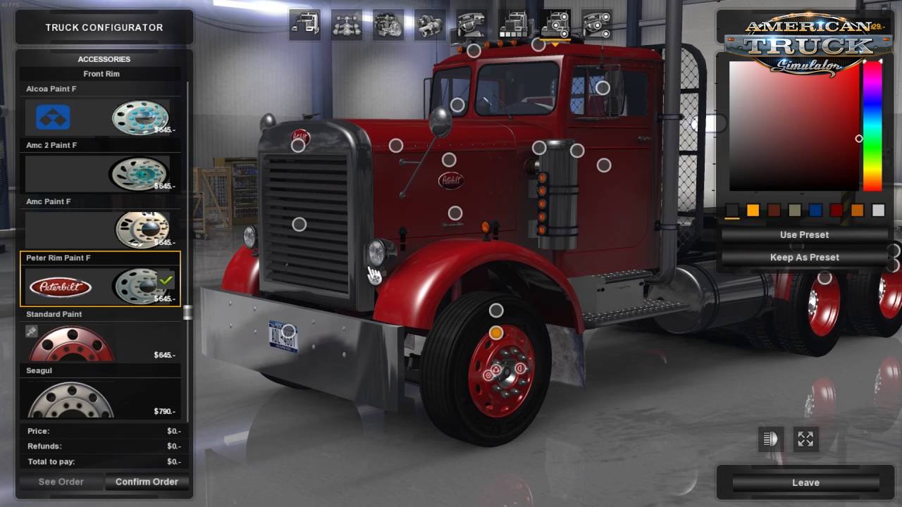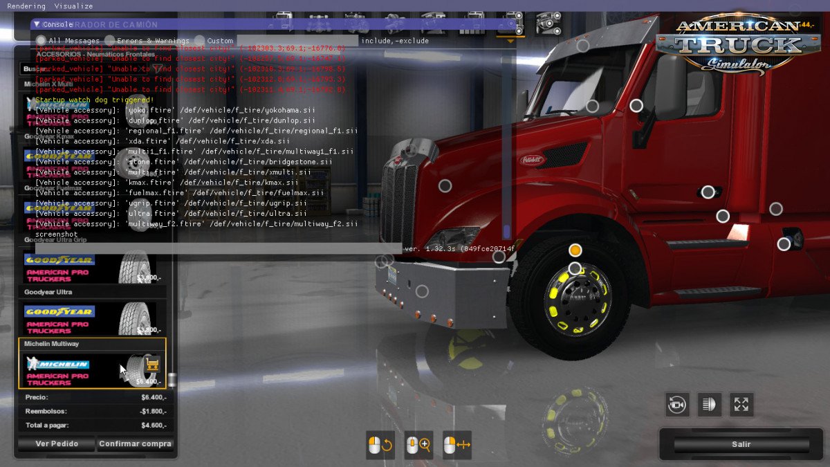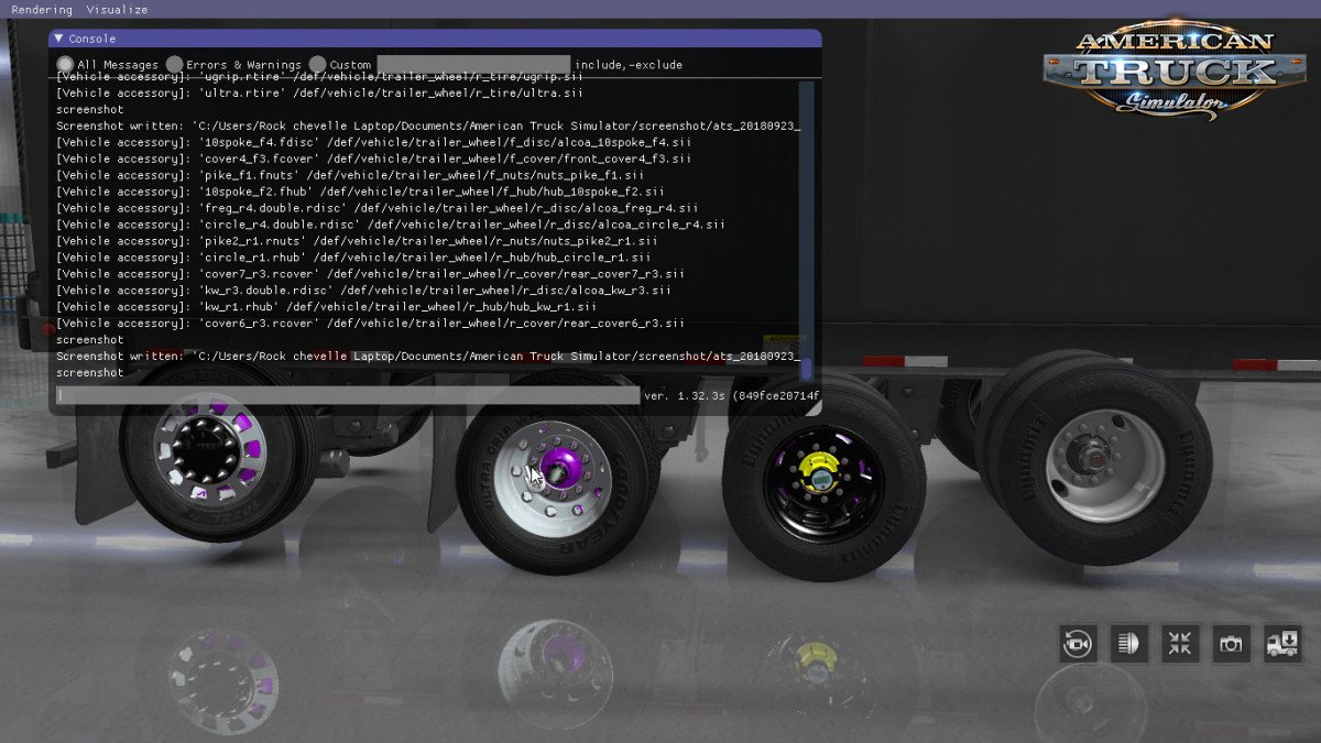 New update: *Fixed bugs *Now hub options are more accessible, because they come out only the unique for each model of Rim. *Added two new models of rim (Alcoa Oval and trockebus rim) Remember that can be used without problems in Euro Truck Simulator 2. Features mod: - was adjusted to the price of all the accessories - New material for the wheels (Aluminum) - New wheel model - Added 9 new models of tires - tires were eliminated the XFA Michelin2 and BF Goodrich All fittings are available for trailers own Tested on game version v1.32.x !RECOMMENDATIONS! It is recommended to remove all of the previous version, since some internal names were changed, and could result in an error. It is recommended to place as a top priority the mod, since it is updated to version 1.32x and could have errors with old mods. Credits: Rockchevelle |