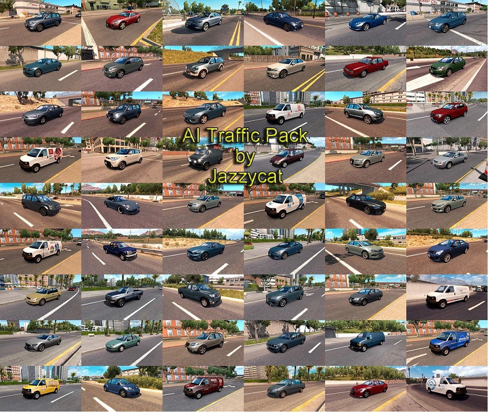 Pack adds in traffic 289 new AI cars: Chevrolet Blazer, Tahoe(’07, ’15), Caprice, Cruze, Malibu, Silverado(’07, ’18), Colorado(’07, ’15), Avalanche, Trailblazer, Cobalt, Impala(’96, ’03,’06, ’14), Suburban ’98, Spark, HHR, Camaro, Corvette Dodge Grand Caravan, Neon, Dart, Intrepid, Caravan, Journey, Caliber, Durango(’99,’11), Charger(’06, ’12), Challenger, Ram (1500 ’06, 2500 ’94, Van) Ford F150(’93, ’10, ’18), F350, Focus, Taurus(’00, ’10), Fusion, Mustang(’95, ’13), Ranger, Explorer(’96, ’10), Expedition, Aspire, Escape(’08, ’13), Flex, Fiesta, Escort(wagon), E150, F250(service) Chrysler PT Cruiser, 300C(’08, ’12), LHS, Pacifica Jeep Wrangler, Liberty, Grand Cherokee, Gladiator GMC Yukon(’00, ’07, ’15), Savana, Canyon, Envoy, Vandura, Sierra, Jimmy Cadillac CTS(’04, ’10), XTS, XT4, CT6, Escalade (’16, ’21), Eldorado ’99 Ram 1500 ’19, 3500 Pontiac G8, Sunfire Plymouth Grand Voyager Oldsmobile Cutlass Ciera, Alero Buick Roadmaster Mercury Tracer Saturn Ion Lincoln Town Car, MKX, Navigator Hummer H3 Tesla Model X, Model 3 Toyota Tundra, Camry(’97, ’07, ’18), Corolla(’95, ’08), Land Cruiser(100, 200), Highlander, Rav4(’04, ’13, ’17), Yaris, C-HR, Avalon, Prius C Lexus GS, IS(XE10, XE20, XE30), LS, CT, LX Scion xD, tC(’05, ’12), xB Honda Fit(’09, ’15), Civic(’07, ’12, ’19), CR-V(’01, ’07, ’15), Odyssey, Insight, Pilot Nissan Altima(’07, ’19), Sentra, Frontier(D22, D40), Murano, Rogue, Maxima, Leaf, Versa, Juke, Titan, Hardbody, Pathfinder Hyundai Sonata(’98, ’15), Tucson(’10, ’15), Santa Fe, Veloster, Elantra, Genesis, Azera Infinity Q50, G35, G37, XF50 Kia Sportage, Soul, Forte Koup, Stinger, Sedona, Optima(’11, ’16) Mitsubishi Montero, Outlander, Lancer, Galant Subaru Legacy(’05,’10), Forester Mazda 3(’12), 6(’06, ’08, ’15), CX-3 Acura RDX ’19 Suzuki Liana Leisure Libero Triple E Commander, Regency GT Mercedes-Benz C-Class(W203, W204), E-Class(W212, W213), S-Class(W221, C217), R-Class, CLA, GL, ML, GLA, GLC(coupe), GLE(C292, W167), AMG GT 4-Door Coupe, Metris, Sprinter Audi A3(sedan), A4(B6, B7, B8, B9), A5, A6(C8 Avant), A7, A8(D4), Q7(’08, ’15), Q5, Q8, e-tron BMW 3(E46, E92, F80), 4(F82, G22), 5(F10, G30), 6(G32), 7(E65), X1(E84), X2, X3(F25), X5(F15, G05), X6(F16), X7, i3 Volkswagen Jetta(4, 5), Golf(7, 8), Beetle, Touareg, Tiguan(’14, ’17), Arteon Volvo S60(’04, ’11, ’19), V60, XC90’17, 850(wagon) Porsche Cayenne, Macan, Panamera, Panamera Sport Turismo, Taycan Land Rover Evoque, LR3, Velar, Defender Saab 9-3(’02, ’08), 9-7x Jaguar F-Pace, I-Pace, XE, XJ Maserati Ghibli, Levante Rolls Royce Cullinan Bentley Bentayga Mini Clubman, Cooper Roadster Aston Martin DBX Alfa Romeo Giulia Fiat 500 Smart Fortwo All standalone, works on any maps. Included real 3D logos for default cars. Compatible with all my packs. Tested on version 1.40.x Version 11.0 – added Toyota RAV4 ’17 and Volkswagen Tiguan ’17, fixed bug with turn signals for Nissan Rogue Credits: JC |
