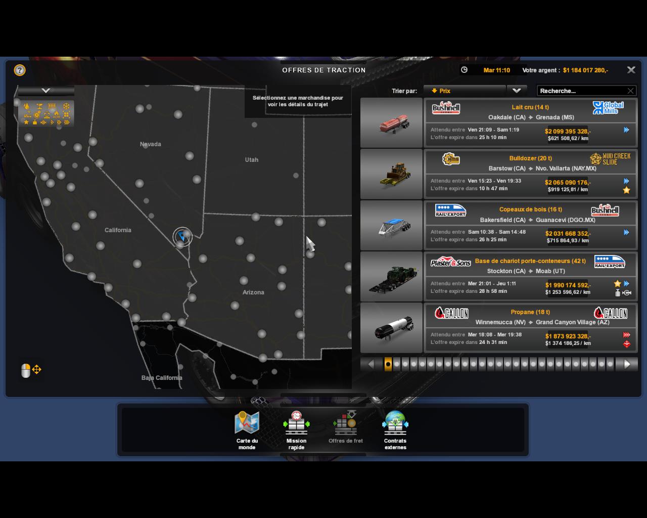Mod to have many money in game Base Revenue per KM : 550 Small Garage Price : 18000 Garage Upgrade Price : 10000 Fuel Discount in Garage (Percentage) :70% Truck Count for On-line Purchase : 5 Abandoned Job Fine : 2500 Cargo Damage Cost : 0.00 Cargo Damage Cost factor :0 Delivery Window coefficient (Easy-Medium-Hard): 6200.00 – 6500.15 – 7500.40 Fixed Revenue : 55875000 Revenue Coefficient per KM (freght market) : 15500.90 Revenue Coefficient per KM (Cargo market) : 15500.80 Cargo Delivery Experience : 10.0 Parking Experience Bonus (Easy) : 177500 Parking Experience Bonus (Medium) : 177500 Parking Experience Bonus (Hard) : 177500 Parking Experience Bonus Double (Easy) : 188500 Parking Experience Bonus Double (Medium) : 188500 Parking Experience Bonus Double (Hard) : 188500 Credits: kbahanderson Credits: kbahanderson |