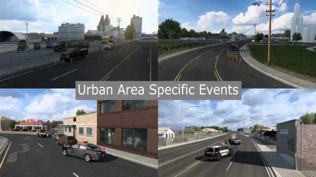 This mod adds over 600 different new random events to appear on the roads in ATS. There are many different types of events ranging all the way from car accidents to asphalt patches and from trailer fires to breakdowns. All of the events are dynamic in one way or another so they are slightly different each time they spawn. All of the events have different rarity levels depending on the type of event so some events will spawn more often than others. Different types of events have different rarity levels aswell so some events you will see more often than others. Version 1.4.2: – Fixed issues with ground texture on events involving truck trailer. – Added abandoned vehicle events (car, crashed car, van, small truck) and possibility to have warning triangle. Credits: danbywinby |