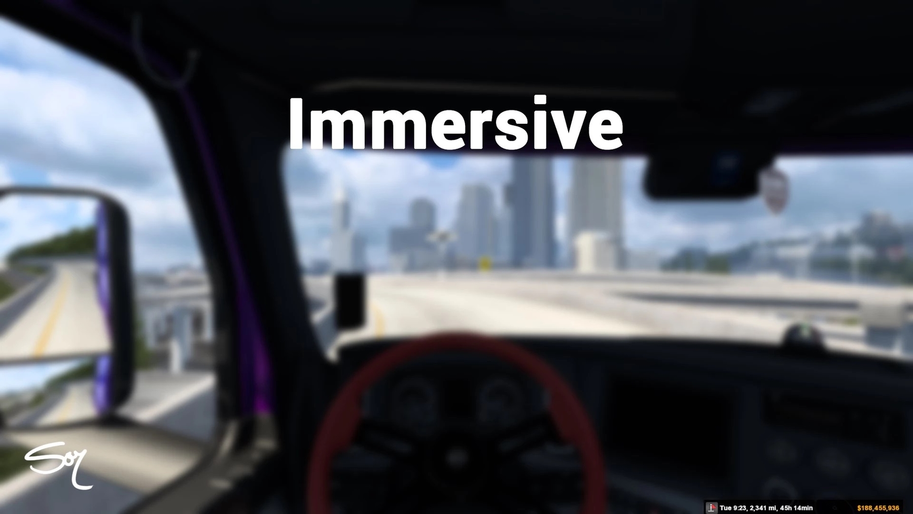 A route advisor, two options – Immersive or Minimalist. Use F3 to switch. Minimalist Route Advisor All standard information with a minimalist design; Immersive Route Advisor ETA and money information only; GPS and Weigh Station pop-up disabled. Job, Truck and Warnings info kept in both options. (F6, F7, F8) Improved mirror position (F2) Running line disabled Compatible with 1.40 Credits: Sonur |