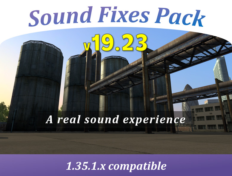 CHANGELOG 19.23 2 new chemical factory environment sound replacements, courtesy of AlexeyP. CHANGELOG 19.22 1 new train sound added to array for mover trains, courtesy of AlexeyP. [ETS2 edition] CHANGELOG 19.21 1 new real engine sound for 3rd generation Land Rover Range Rover in AI traffic. Finetuned sound range distance for movers. [ETS2 edition] DESCRIPTION =========== – Pack provides improvements to common sounds in the game. It includes euphonious, relaxing and real sounds. – The goal of the mod is to make the game’s sounds feel like real life. The mod will have regular updates to cover more sounds to add immersion. Thus the Steam Workshop version is highly recommended for quicker updates. COMPATIBILITY ============= * ETS2 1.35.1 + ATS 1.35.1. No errors in game log. Must have high priority in Mod Manager. * Compatible with all maps and all trucks, including truck mods. * Does not replace individual truck sounds, so this mod can be used with an unlimited amount of truck sound mods of your choice. * Supports compatibility with your favorite rain sound mods as this does not alter rain/thunder sounds. Check the load order image included for more details. * If using any of Grimes’ seasonal mods, place the seasonal mod with higher priority than the Sound Fixes Pack for a more accurate seasonal experience. * If using winter mods, please enable Frosty Winter Weather Sound addon with higher priority (in Options folder or Steam Workshop). * Traffic density/behavior mods (in lower priority in Mod Manager) can enable the realistic sound ranges plugin from Sound Fixes Pack by inserting this line into def/traffic_data.sii: @include “traffic_data_update.sui” MINIMUM REQUIREMENTS ==================== Requires higher priority in Mod Manager than: – any map mods (e.g. ProMods, RusMap, etc.) – any AI traffic mods (e.g. Jazzycat’s traffic packs) – any AI traffic density/behavior mods (e.g. those listed in section below) Drive Safely, antonvezdehod, Ludmilla, Katixa/Irreo, Balamut, AlexeyP, cipinho, kriechbaum, Slider_556 Credits: Drive Safely, antonvezdehod, Ludmil |