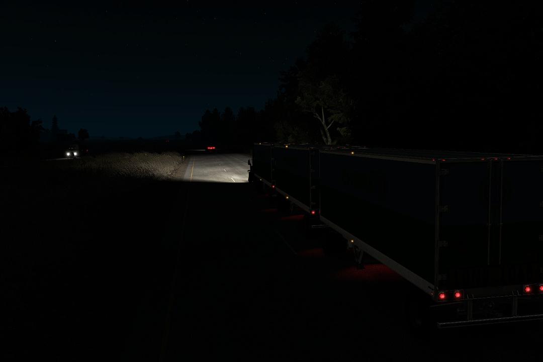 Increase brightness of low beam and reverse lights, as well as AI vehicle's rear and brake lights. The direction of the low beam lights now also tends slightly pointing to the left so that road signs on the right side do not appear too dazzling. No changes made for high beam and other accessory lights. The reserve lights now also wider and has longer coverage. Supported In-game Vehicles All SCS Stock Trucks. All Default Stock AI Vehicles. Credits: madman |