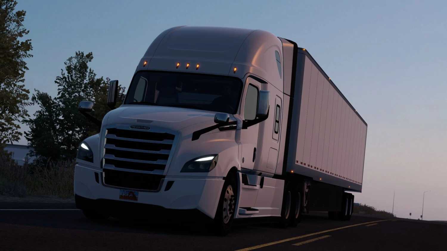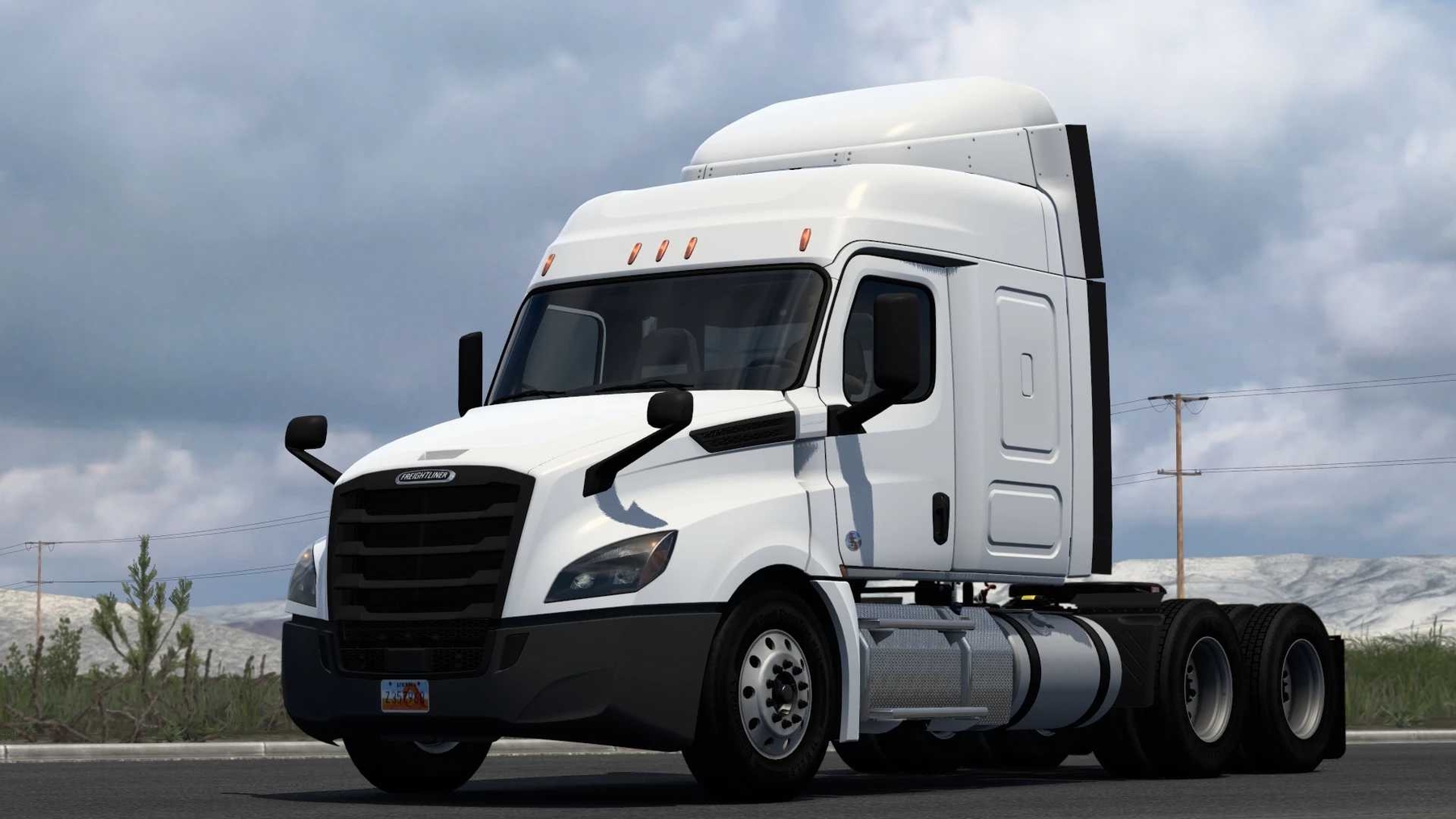 Freightliner Cascadia: Increased volume of turn signal indication clicks and turn signal stalk sounds. Brings back the original SCS Detroit DD15 engine sound mix from game version 1.39. Deleted light flares from cab side turn signals to prevent light from leaking into cab. Slid fifth wheel and moved trailer cable rack on day cab 6×4 chassis. Changed sleeper vent from chrome to paint on 48 inch sleeper cab. New for Freightliner Cascadia in version 1.1: Added support for 2020+ model year parts. Fixed lightmask on side marker for LED exclusive headlights. Western Star 49X: Increased volume of turn signal indication clicks and turn signal stalk sounds. Brings back the original SCS Detroit DD15 engine sound mix from game version 1.39. Deleted light flares from front identification and clearance lamps to prevent light from leaking into cab. Removed GPS system from all interiors. New for Western Star 49X in version 1.1: Slid fifth wheel and moved trailer cable rack on 6×4 SBA medium chassis. Moved hood mirror interior model to a more realistic and accurate location. Update for game version 1.43 Credits: supersobes |