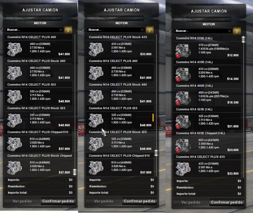 This mod contains the following engines: Cummins N14: -380 HP -435 HP -460 HP -525 HP -605 HP Chip Tuned Cummins N14 Celect Plus (in two variants: stock and normal): -435 HP -460 HP -525 HP -605 HP Chip Tuned This mod supports the following trucks: Autocar -AT (alpi0120/XBS) Freightliner: -Argosy (Harven) -Cascadia (CyrusTheVirus) -Cascadia 2019 (SCS) -FLB (Harven) -FLD (Harven) -Classic XL (BSA) -FLC (XBS) International -9300 (Panther/Guidot) -Lonestar (SCS) -HX520H (Harven) -LT (SCS) -9900i (SCS) Kenworth -T600 (FranckPeru) -T660 (FranckPeru/JorgeGamer444) -T660 (FranckPeru) -T680 (SCS) -T800 (FranckPeru) -T800 (GTM) -W900 (SCS) -W900a (bigdaddy) -W900b (GTM) -W990 (Harven) -K200 (RTA) Mack -Anthem (SCS) Peterbilt -379 (Stass556/Dmitry68/Fox071rus) -387 (Ch_Vitalik) -389 (SCS) -567 (GTM) -579 (SCS) Volvo -VNL (SCS) Western Star -49X (SCS) Include in-game convoy sounds (only from version 1.42). For the mod to work simply download the file, place the mod in its respective folder and it will appear in your manager where it will appear only to activate it. If you want to share the mod, please do so with the original link (Sharemods). Resubmitting to file upload sites is prohibited. Respect and properly use the credits if you want to use any of the mod files. Upgrades: v 1.5 – Significant audio fixes for all engines. – Minor tweaks to track curvatures. – Jake brake stage volume adjustment on Celect Plus variants. Credits: Credits: eelDavidGT, odd_fellow, Harven, Kapitan Kriechbaum, SCS. Credits: eelDavidGT, odd_fellow, Harven, Kap |
