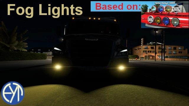 This mod provides 1) functional foglights for bumpers that have nonfunctional place holders for them. Fog lights are on when parking lights are on. 2) functional foglights for bumpers that have slots Trucks included: – SCS Freightliner Cascadia – SCS International Lonestar – SCS Kenworth W900 (partial) – SCS Mack Anthem – SCS Peterbilt 579 – SCS Volvo VNL – SCS Western Star 49X For v1.41.х, 1.42.х Credits: obelihnio, Niksarli, Eddie Yantz |