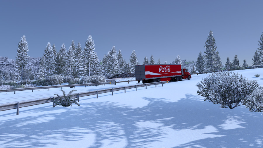 This mod simulates winter for American Truck Simulator. Key Features Winter weather and environment Snow/Sleet instead of rain Frosty road textures Winter daylight hours and temperatures Random cloudy, misty and sunny weather *Heavy Winter, Physics and other addons available for download *Heavy Winter Addon provides snowy/slushy looking roads and a snow covered landscape with less grass. *Physics – Makes the roads a little more slippy Compatibility Latest Version: ATS 1.46 Changes in v4.8 Updated for 1.46 Updated for Texas dlc Vegetation improvements Many other improvements & fixes Recommended Settings Color Correction: Enabled Vegetation Detail: High Ambient Occlusion (SSAO): Off (SSAO darkens the vegetation providing a less wintery look) Important!! Frosty is a winter weather and graphics mod and is not compatible with other weather, HDR and graphics mods such as RGM, NaturaLux, Project Next-Gen, Filmic Lighting etc. You may notice colored terrain at times, unfortunately at the moment there’s no way to remove it. Frosty should be placed on top in Mod Manager. Credits: Grimes Credits: Grimes |
