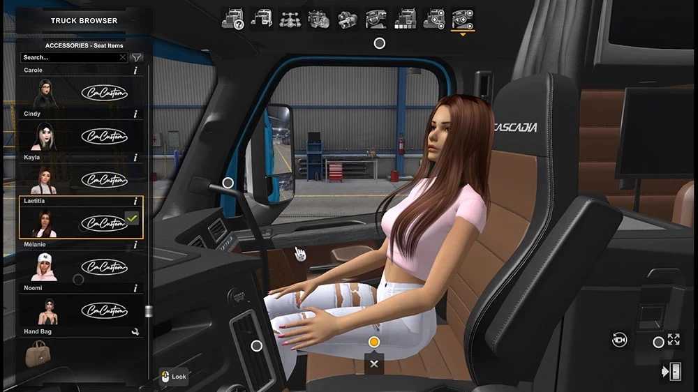 Changelog Added support for new Volvo VNL 2018 Fixed bugs Updated for patch 1.47.x This mod adds beautiful girls on the passenger seat. What Girls you get: Carole Cindy Kayla Laetitia Melanie Noemi Credits: Chris Mursaat |