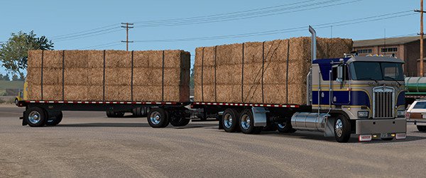 This is an add-on to Overfloater’s K100E. Please do not bother Overfloater with any problems with this mod, it is not his responsibility to support. This should be placed with a higher priority than the K100E. Please watch the YouTube video if you have any questions with how to setup the truck or trailer, ATS limitations make things a bit wonky. This is inspired by many of the old school hay haulers on the west coast, but it can haul any of the default SCS flatbed cargoes. Includes • 6×4 28ft aluminum flatbed chassis (only for the standard cab) • 2 axle 28ft aluminum flatbed pup trailer • Longer set of mudflaps for the trailer. Credits: Deezle, Overfloater |