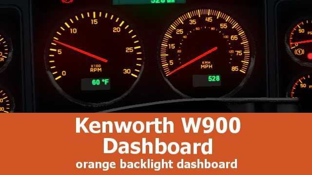 This mod improves the dashboard of Kenworth W900 Orange backlight dashboard for Kenworth W900, you can turn off and turn on the backlight Credits: Duke |