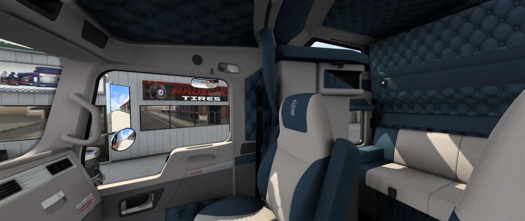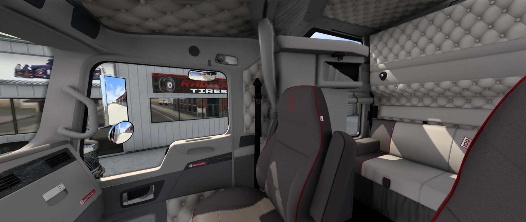 Kenworth W900L Interior Add-ons v1.1 Update: 5 Mar – The mod works now for all cabins – Added lights on the back of the cabs This mod adds various trim color options to the interiors for the default Kenworth W900L from SCS. *Note! Works on interior rework are being carried out only in cab 86′! Credits Sherman Credits: Sherman |