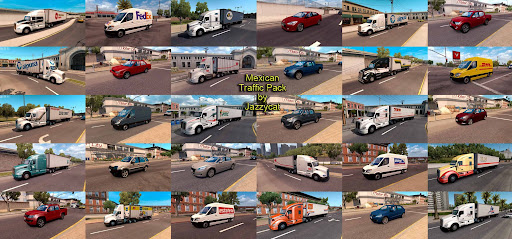 Pack adds in traffic vehicles for Mexican maps: Volkswagen Amarok, Saveiro, Gol, Up, Polo, Pointer Pickup Renault Fluence, Captur Peugeot 208, 508, 308, 2008, 3008 Toyota Hilux Ford Ecosport Chevrolet Tornado, Corsa Seat Ibiza, Leon Nissan Tsuru, March Mitsubishi L200 Mercedes-Benz Sprinter, A-Class Fiat Uno Alfa Romeo Giulietta Suzuki SX4 trucks, trailers and buses with mexican skins. All standalone. Compatible with all my packs. For versions 1.42.x Some skins by Alex Valenmar, Samdeb, Pistianzer, DigitalBusMX, Landsky, Andres Melendrez, Pequeshiro, mexican_scientist. For Mexican vehicles only on Mexican maps you must have in mod folder 2 files: Mexican_Traffic_Pack_by_Jazzycat_v2.6.1_base.scs Mexican_Traffic_Pack_by_Jazzycat_v2.6.1_mexico.scs For Mexican vehicles everywhere only 1 file: Mexican_Traffic_Pack_by_Jazzycat_v2.6.1_base.scs Version 2.6.1 – compatibility update for game version 1.42 Credits: JC |