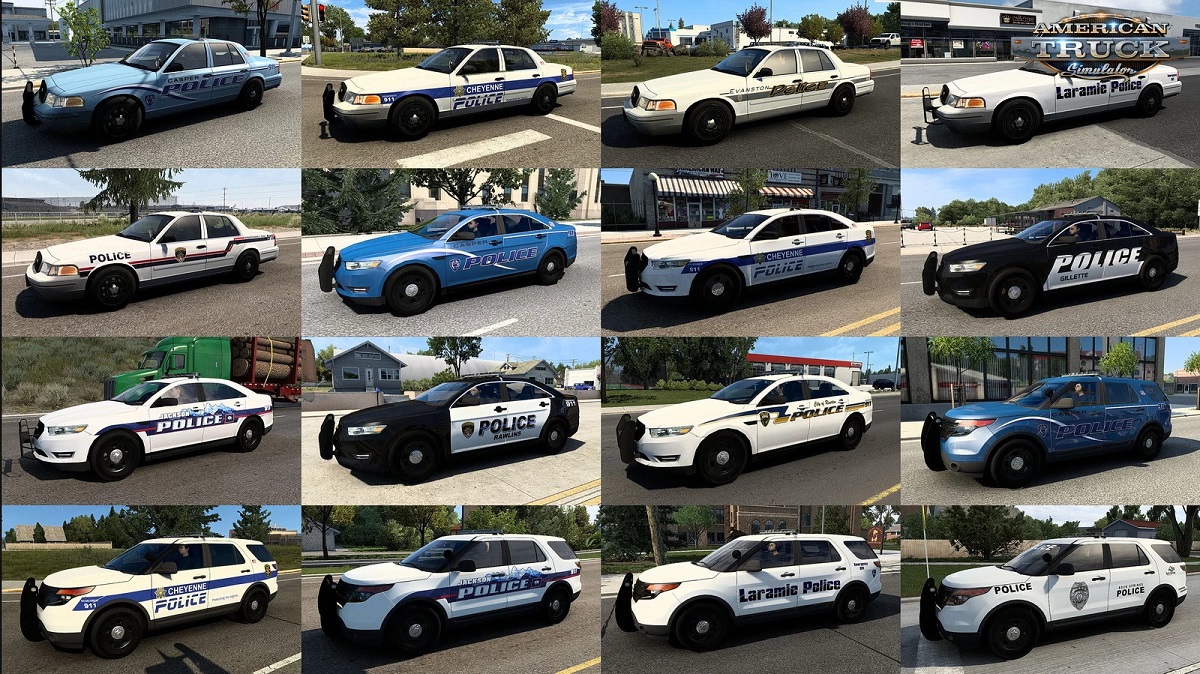 Municipal Police Traffic Pack - this mod adds police cars/liveries to almost every city in California, Nevada, Arizona, New Mexico, Oregon, Washington and Utah. The cars have various wheel, rambar/pushbar and lightbar combinations . The mod removes the original police cars from the states made by SCS and replaces them with the cars in this mod, however the Taurus with the open door can appear in the random event accident. For owners of Special Transport DLC: - Front escort cars have been replaced in the forementioned 7 states with state police variants from this mod. - The mod should be compatible with any traffic density mods. Changes in v1.2.5: - Fixed crash when using special transport when the game chooses Ford Crown Vic as an accompaniment machine. Ford Crown Victoria CA: Bakersfield, Barstow, Carlsbad, El Centro, Eureka, Fresno, Los Angeles, Oxnard, Redding, Sacramento, San Diego, San Francisco, San Rafael, Santa Cruz, Santa Maria, Stockton, Ukiah NV: Carson City, Elko, Ely, Jackpot, Las Vegas, Reno, Tonopah, Winnemucca AZ: Flagstaff, Holbrook, Kingman, Nogales, Page, Phoenix, Show Low, Sierra Vista, Tucson, Yuma NM: Alamogordo, Albuquerque, Artesia, Carlsbad, Clovis, Farmington, Gallup, Hobbs, Las Cruces, Raton, Roswell, Santa Fe, Socorro, Tucumcari OR: Astoria, Bend, Burns, Coos Bay, Eugene, Klamath Falls, Medford, Newport, Ontario, Pendleton, Portland, Salem, The Dalles WA: Aberdeen, Bellingham, Colville, Everett, Grand Coulee, Kennewick, Longview, Olympia, Omak, Port Angeles, Seattle, Spokane, Tacoma, Vancouver, Wenatchee, Yakima UT: Cedar City, Logan, Moab, Ogden, Price, Provo, St. George, Vernal + state patrol variants in California, Nevada, Arizona, New Mexico, Oregon, Washington, Utah, Idaho and Colorado Ford Taurus CA: Los Angeles, San Francisco NV: Las Vegas WA: Seattle UT: Salt Lake City + state patrol variants in Nevada, Arizona, New Mexico, Utah and Colorado Ford Explorer (5th generation) CA: Los Angeles, San Diego, San Francisco NV: Las Vegas (NV) AZ: Phoenix NM: Albuquerque OR: Portland WA: Seattle + state patrol variants in California, Nevada, Arizona, New Mexico, Oregon, Washington and Colorado Ford Explorer (5th generation, 2016 facelift) CA: Los Angeles, San Diego, San Francisco NV: Las Vegas, Reno NM: Albuquerque OR: Portland WA: Seattle UT: Salt Lake City + state patrol variants in California, Nevada (silver livery), Arizona (silver livery), New Mexico, Washington and Utah Dodge Charger (6th generation) CA: Los Angeles NV: Reno + state patrol variants in California, Nevada, Oregon, Utah, Idaho and Colorado Dodge Charger (7th generation) CA: Los Angeles NV: Las Vegas, Reno NM: Albuquerque + state patrol variants in Nevada, Oregon, Utah, Idaho and Colorado Dodge Charger (7th generation, 2015 facelift) NV: Reno + state patrol variants in California, Nevada (silver livery), Oregon (silver livery), Utah, Idaho and Colorado Tested on game version 1.43.x Credits: Gabenz88 |