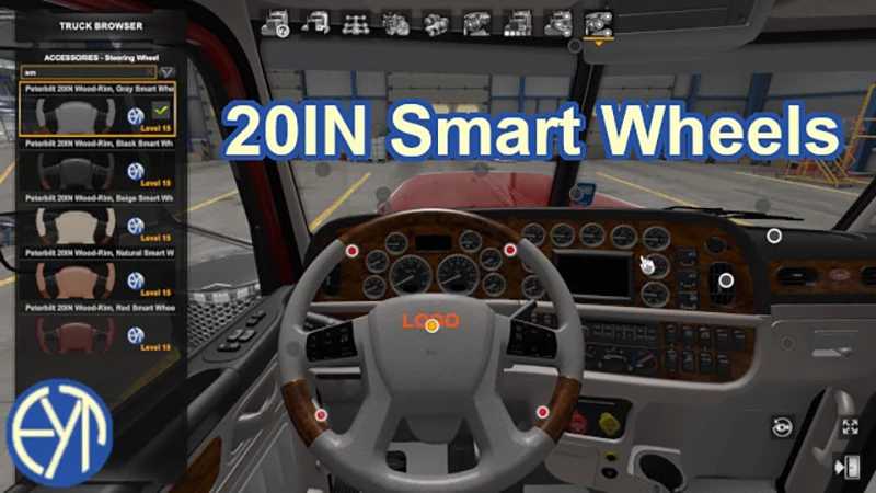 New steering wheels Modeled after the SCS “Exclusive” steering wheel, they have a diameter of 20 inches / 500 mm, so most of the dashboard is visible (SCS steering wheels are 18 inches / 460 mm) Wooden rim The skin textures are available in colors: beige, black, blue, gray, natural and red There is a logo of the truck manufacturer that you are using Changes: Added support for Western Star 5700XE For the game 1.46.x Credits SCS, Eddie Yantz Credits: Eddie Yantz |