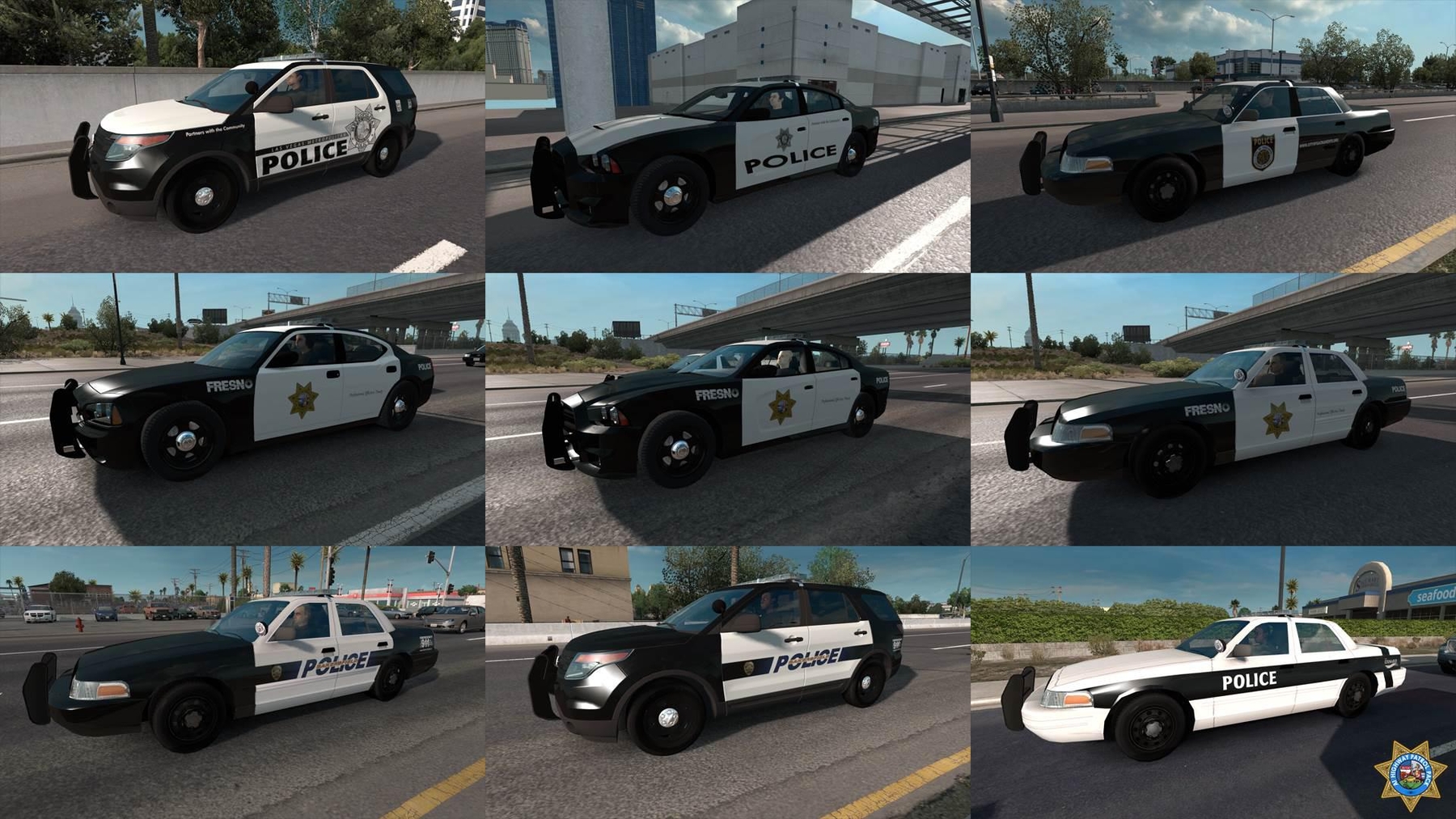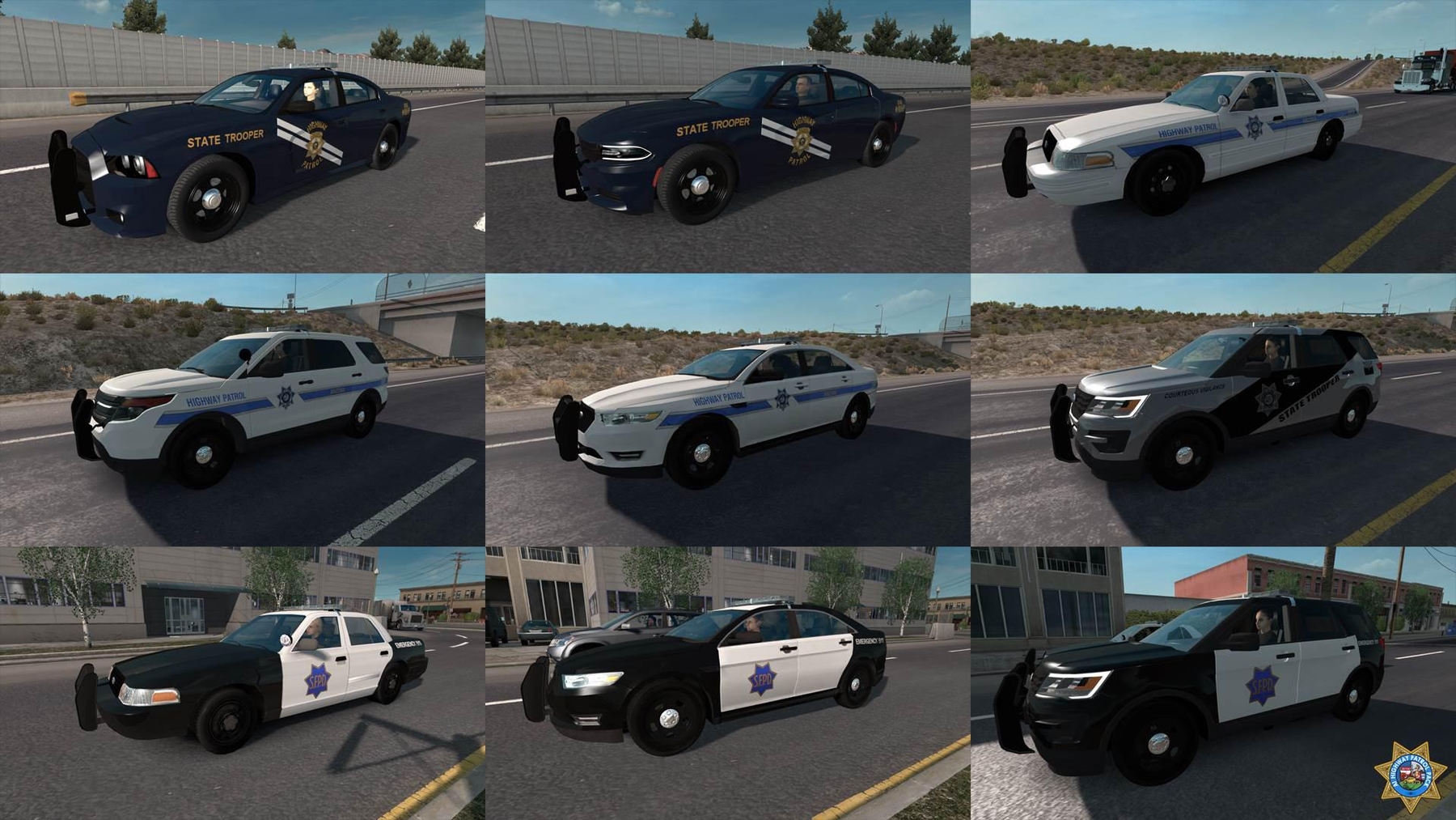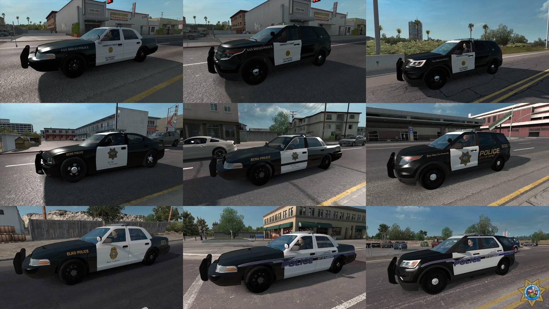 Data files have been edited to ensure the mod works in ATS 1.35 without removing any new features added by SCS in the mean time. (For the moment you will have warnings in the console about old model versions. If someone wants to re-save the models to remove those warnings, please do!) The cars added by this mod do not have operational flashing lights at this time, but otherwise are functional. As of mod update 1.42, all parked police car data are not modified. The game's default data files now properly put the correct state or city's patrol car in parked locations. As of ATS version 1.29, the base game now has separate state highway patrol vehicles, which was the original purpose of this mod. However, this mod still provides many more city police cars, as well as a wider variety of models for state highway patrol in California, Nevada and Arizona. This version of the mod does not suppress default cars anymore, for the moment. So you may see generic police in cities in addition to any specific city police liveries. This is necessary because of how the game now treats police and highway patrol as separate entities -- the only way to have any police coverage in cities with no city police livery available is to allow generic cars to spawn in every city. (However, SCS did add some city variants to the Ford Taurus that this mod didn't have, so there will be some more variety.) The alternative is to undo the new feature, and have highway patrol spawning in cities like they used to. That being said, you will see this mod's highway patrol cars spawning in cities where no city police car of that model is available, because these models were all designed for the old system where the default appearance was a state highway patrol livery and city police were variants. (In the vanilla game's new cars, the default appearance is a generic police car and specific city liveries are variants; highway patrol are entirely different animals.) So, yeah, there certainly are improvements that can be made, but for now it's mostly working -- no errors, and the right cars are showing up where they should as far as I've been able to tell. Let me know if you are noticing a lack of a city police variant that used to be present. And if you come up with any improvements yourself, do share so we can add it to the mod; there's no reason this can't be a community effort. Credits: gabenz88, Keeper1st |