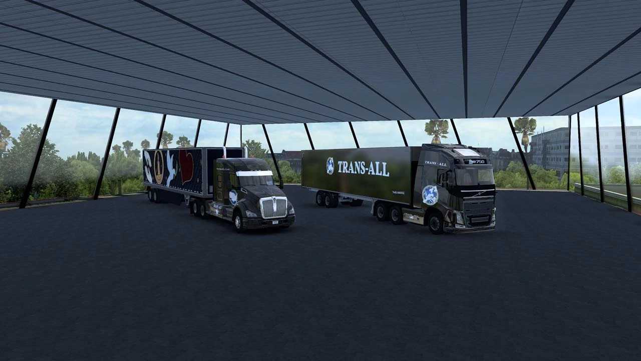 New: Second floor with ramp Added workshop pit gate 3 Features: – Completely revised design inside and out – Whole area passable inside and outside – Illuminated company logo – 9 gates that can all be opened and driven on – Second exit gate in the rear wall of the hall – Workshop: 3 ramps, 2 passable, 2 with random truck allocation – Workshop: workshop pit – driveway to the second floor – 5 parking spaces with random vehicles – New gas station – Automatic roller shutter at site entry / exit – Animated workers, guard and dogs – Sitting area with pictures and calendar – second floor with *Rolling gate entry-exit *Office with staff and conference room *Storage area for trucks and trailers *Panoramic view of the city Works with ATS 1.46 Credits: swini Credits: swini |