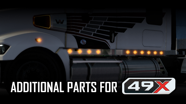 Hello, I'm back with more Western Star 49x parts. Currently loving this truck and decided to add some more customization that suits my liking. What's inside : - Custom Logger Bumper with functional fog lights and slots (available in chrome and paint, SBA and SFA chassis) - Custom Lowered Front Bumper with slots (available in chrome. SBA and SFA chassis) - Custom Front Bull Bar that suitable with SCS's Logger Bumper and my Custom Logger Bumper with slots (availabble in chrome and paint) - Aero Kit/Side Deflector with red led lights (available for 48" cab and 72" cab) - Custom Sideflares with slots (available in chrome and paint, SBA and SFA chassis) Probably will add more. This mod also compatible with my LED DRL mod and Lowered Chassis mod Small Lights in screenshot are from Kenworth W990 mod by Harven Hella Rallye Lights in screenshot are from Hella Rallye 3000 by obelihnio Also, if you wanna support me, feel free donate. Any amount is greatly appreciated! paypal.me/JokoPAdi Credits: Joko_P |