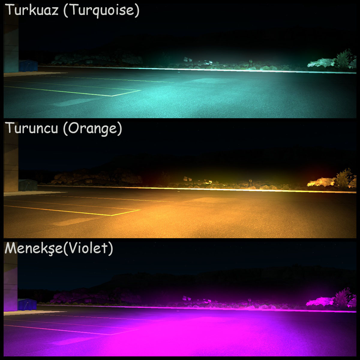 English: Activate colors one by one! Working in 1.39.x and all ats trucks It contains the following colors: *Blue Xenon Far *Green Xenon Far *Red Xenon Far *Turquoise Xenon Far *Yellow Xenon Far *Orange Xenon Far *Violet Xenon Far *Pink Xenon Far Türkçe: Renkleri teker teker etkinleştirin! 1.39.x ve tüm ats tırlarında çalışır. Şu renkleri içerir: *Mavi Xenon Far *Yeşil Xenon Far *Kırmızı Xenon Far *Turkuaz Xenon Far *Sarı Xenon Far *Turuncu Xenon Far *Menekşe Xenon Far *Pembe Xenon Far This mod is my work. Respect my work, if share keep the original link. Please dont re-apload without the author’s link. You can share videos on YouTube. You can put video link here. Credits: SemihKln |