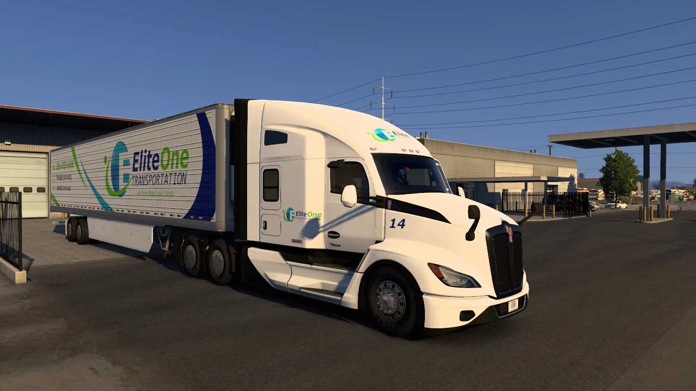 | The “EliteOne Transportation” combo skin for Kenworth T680 NG and own 53f trailer