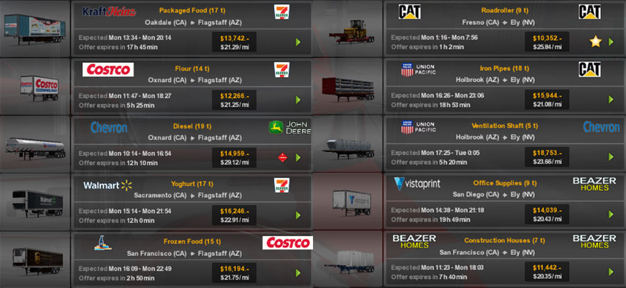 This mod replaces most of the default companies with real company names, logos, signs, train wagons and trailers. 42 Print – Vistaprint Bitumen – Caterpillar Bushnell Farms – Kraft Heinz Charged – Best Buy Chemso – Exxon Mobil Darchelle – E & J Gallo Eddys – 7 Eleven Gallon Oil – Chevron HMS – John Deere Plaster & Sons – Beazer Homes Rail Export – Union Pacific SellGoods – Costco Sunshine – Dole Wallbert – Walmart Home Improvement – Home Depot Darwing – Boeing Added trailers: BP, Shell, BASF, Fedex, DHL, Texaco, Sunoco, Kroger, US Foods, Pacific Seafood and Coca Cola. In game trailers also added to traffic. Compatibility Latest Version: 1.35 Changes in v1.7 Updated for 1.35 Home Improvement changed to Home Depot Darwing changed to Boeing US Foods, Pacific Seafood and Coca Cola added to trailer traffic Walmart trailers changed to white Credits: Grimes Credits: Grimes |