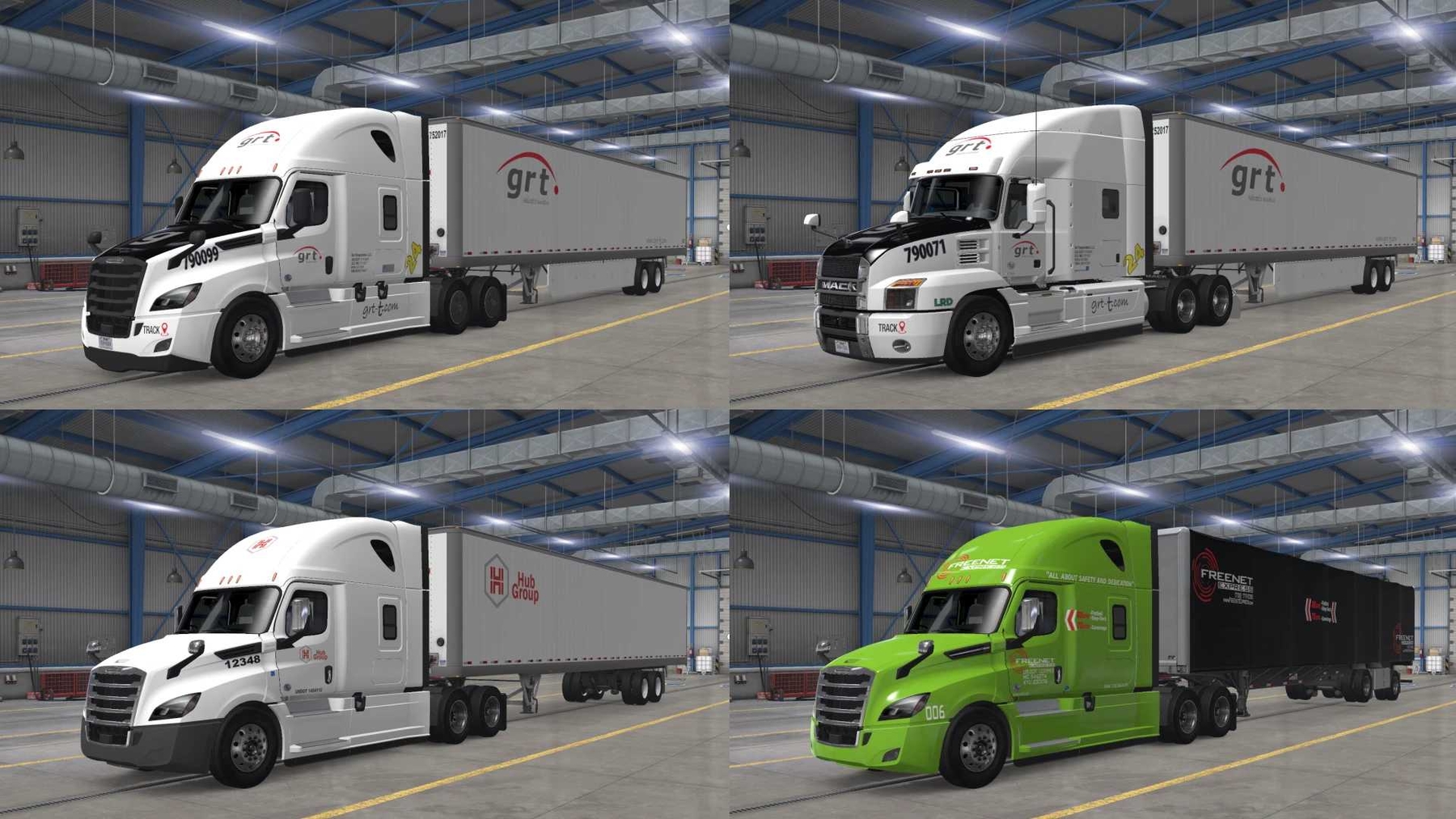 New skins: C.R. England Skins for Freightliner Cascadia 72″ Sleeper RR, Mack Anthem 70″ Sleeper, International Lone Star and LT 73″ Sleeper + 53ft Box Trailer (avaliable in two variants). Family Dollar Skin for 53 and 53ft Box Trailer. Outwest Express Skins for Freightliner Cascadia 72″ Sleeper RR, International LT 73″ Sleeper and Kenworth T680 Hi Rise Sleeper + 53ft Box Trailer. Timco Logistics Skin Western Star 49X Day Cab (SBA and SFA variant). GRT Transportation Skins for Freightliner Cascadia 72″ Sleeper RR and Mack Anthem 70″ Sleeper + 53ft Box Trailer. Hub Group Skin for Freightliner Cascadia 72″ Sleeper RR + 53ft Box Trailer. Freenet Express Skin for Freightliner Cascadia 72″ Sleeper RR + 53ft Sliding Tarp Trailer. Bulk Transport Company Skins for 48ft Dry Bulk and 43ft D-shaped Chemical Tank Trailer. D.M. Bowman Skin for 42ft Dry Bulk Trailer. Service Transport Company Skin for 43ft D-shaped Chemical Tank Trailer. Trimac Transportation Skins for 43ft D-shaped Chemical Tank, 32ft and 42ft Dry Bulk Trailer. Venezia Bulk Transport Skins for 43ft D-shaped Chemical Tank, 42ft and 48ft Dry Bulk Trailer. Credits Ankrpl Credits: Ankrpl |