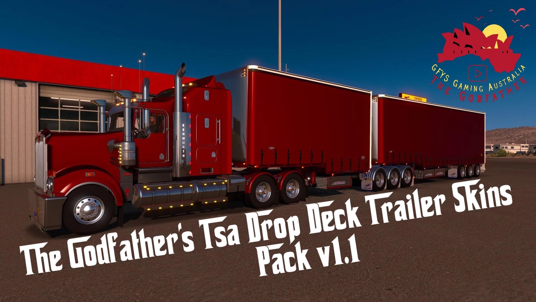 The Godfather’s TSA Drop Deck Trailer Skins Pack v1.1 The Godfather brings his TSA Drop Deck Trailer skins pack witch has been updated to 30 skins for Cam’s TSA Drop Deck Trailers for American Truck Simulator and work from 1.36 up to 1.42 The Skins in this pack are made by The Godfather and holds all Rights to the skins the Trailer is made by C.A.M and holds all Rights to the Trailer.. The List of Skins for the TSA Drop Deck Trailers are listed below ones listed (NEW) are ones added to this Update of the pack.. * Capital Transport (NEW) * Coke Cola 1992 * David Jones (NEW) * Dominos Pizza * Doublemint * Great Northern Brewing Co (NEW) * Hubba Bubba * Jack Daniels (NEW) * Jelly Belly (NEW) * Jim Beam (NEW) * Juicy Fruit * Kellogg’s Coco Pops * Kellogg’s Corn Flakes * Kellogg’s Froot Loops * Kellogg’s Frosted Flakes * Kent Removalist * KFC (NEW) * Kmart Australia * Kraft Singles * MnM’s (NEW) * Mars Bar (NEW) * Mountain Dew * Pizza Haven (NEW) * Pizza Hut * Red Bull * Tandy Electronics (NEW) * Target Australia (NEW) * The Good Guys (NEW) * Vegemite * Woolworths (NEW) Woolworths 1980’s skin has been removed with this update More skins will be added on next update.. Credits: The Godfather & C.A.M |