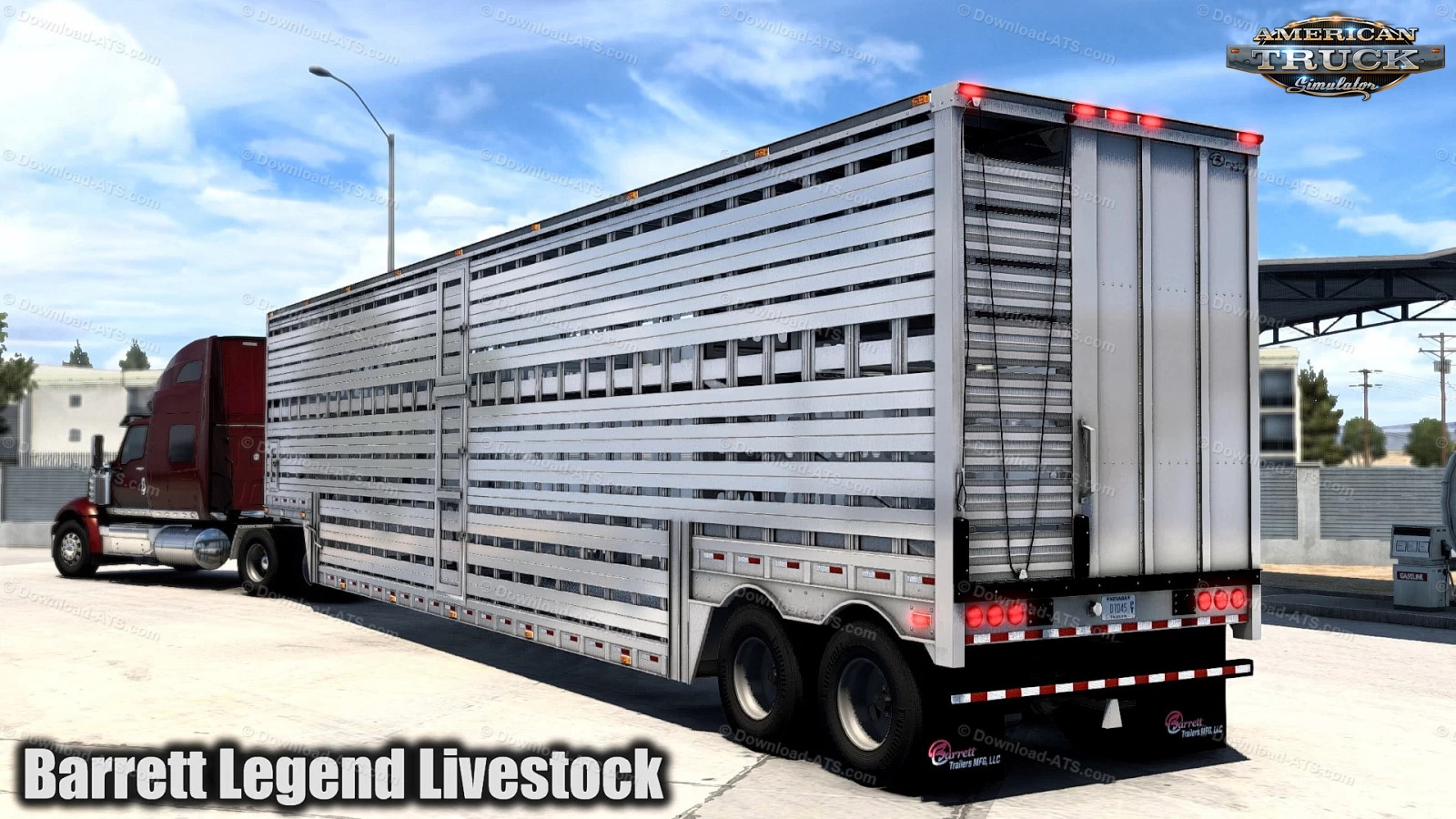 Barrett Legend Livestock - this modification adds a high quality ownable trailer model for ATS players. Features Barrett Legend Livestock: - Standalone trailer; - Advanced hitch; - Cables support; - Support animations; - The model has own cargo loads; - Available for carriage on regular orders; - Tuning present; - working brake and reverse lights; - detailed 3D model. Changes in v1.1: - Adapted to the latest game patch 1.41 Tested on game version 1.41.x Credits: Dylan McBeth, D3d, KeithD |