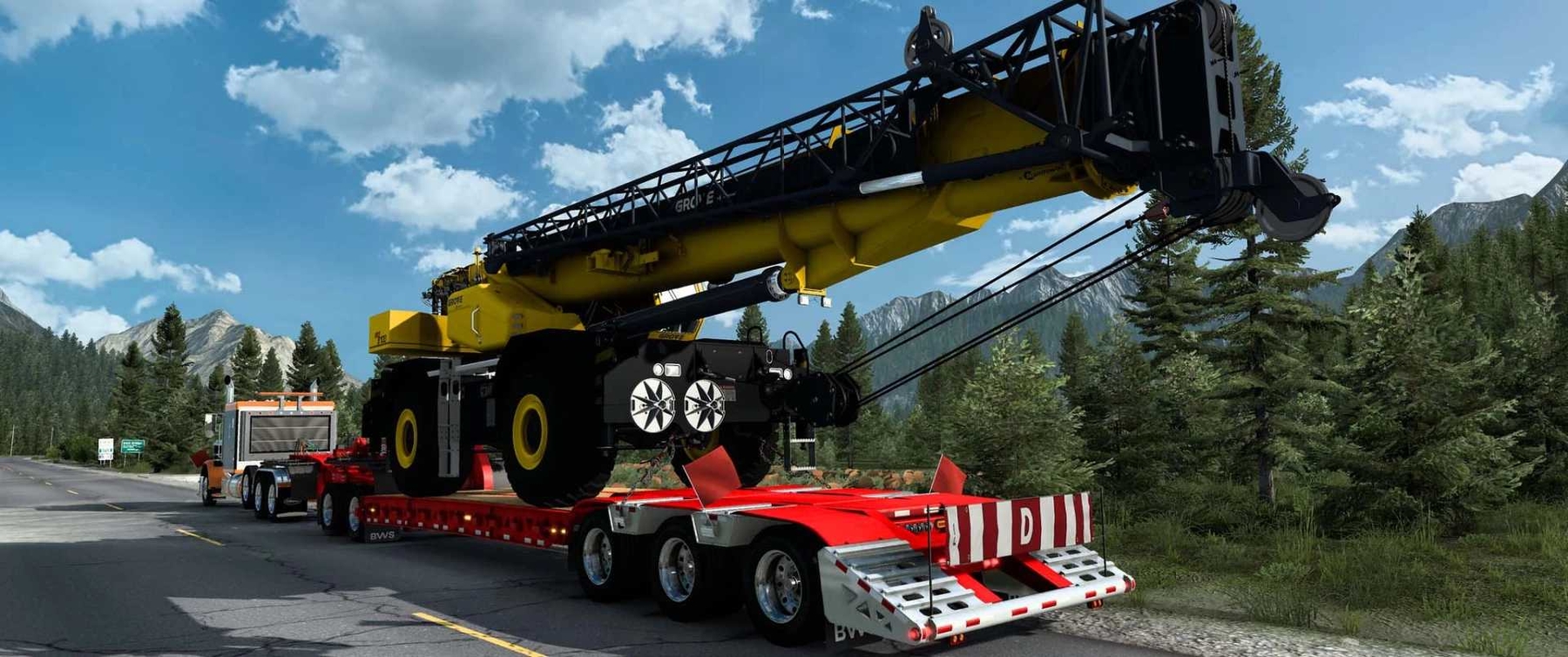| BWS Rigid Neck - is a heavy-duty and durable trailer designed to transport oversized and heavy equipment. It features a rigid neck design, which provides added strength and stability when hauling large loads. The lowboy trailer has a low deck height, making it easy to load and unload equipment such as construction machinery, vehicles, and other large cargo. With its advanced suspension system and high-quality construction, the BWS Rigid Neck Lowboy trailer ensures smooth and reliable transportation of heavy loads across the virtual roads of American Truck Simulator.