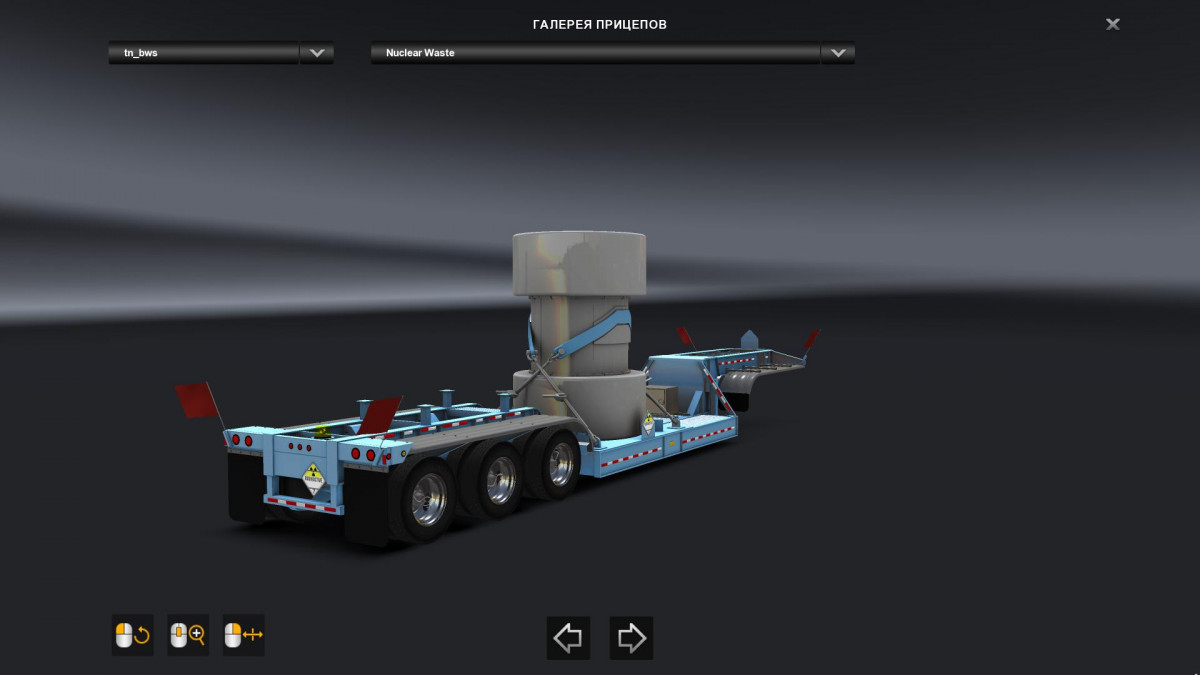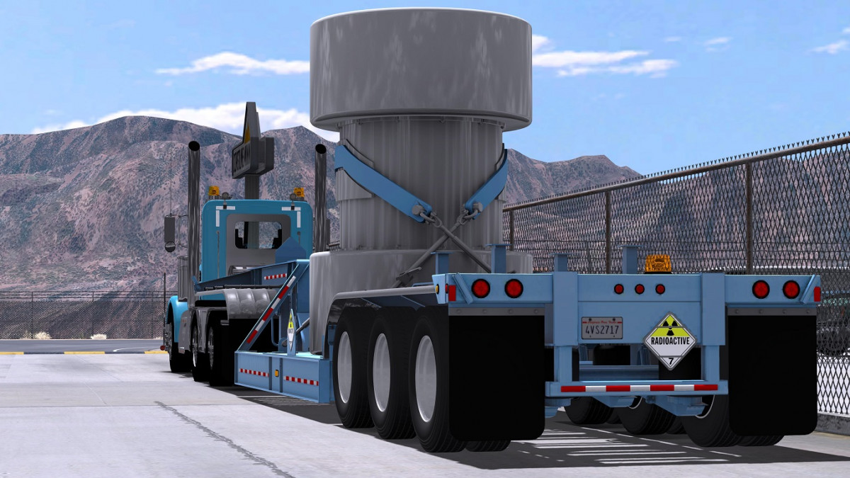 This is a re-release of Quattrophobia’s BWS Specialized Nuclear Waste trailer, but working with the 1.32 cargo market, and updated by Chief86 to have cables. It is not ownable, and most likely will never be updated to be ownable. This has the same ADR 6 requirement that the original had. A word of note: The empty trailer pays like any normal trailer. The trailer carrying the nuclear container pays handsomely. Credits: Trailer Model & Nuclear Flask: Bansheewoj Credits: Bansheewoj |