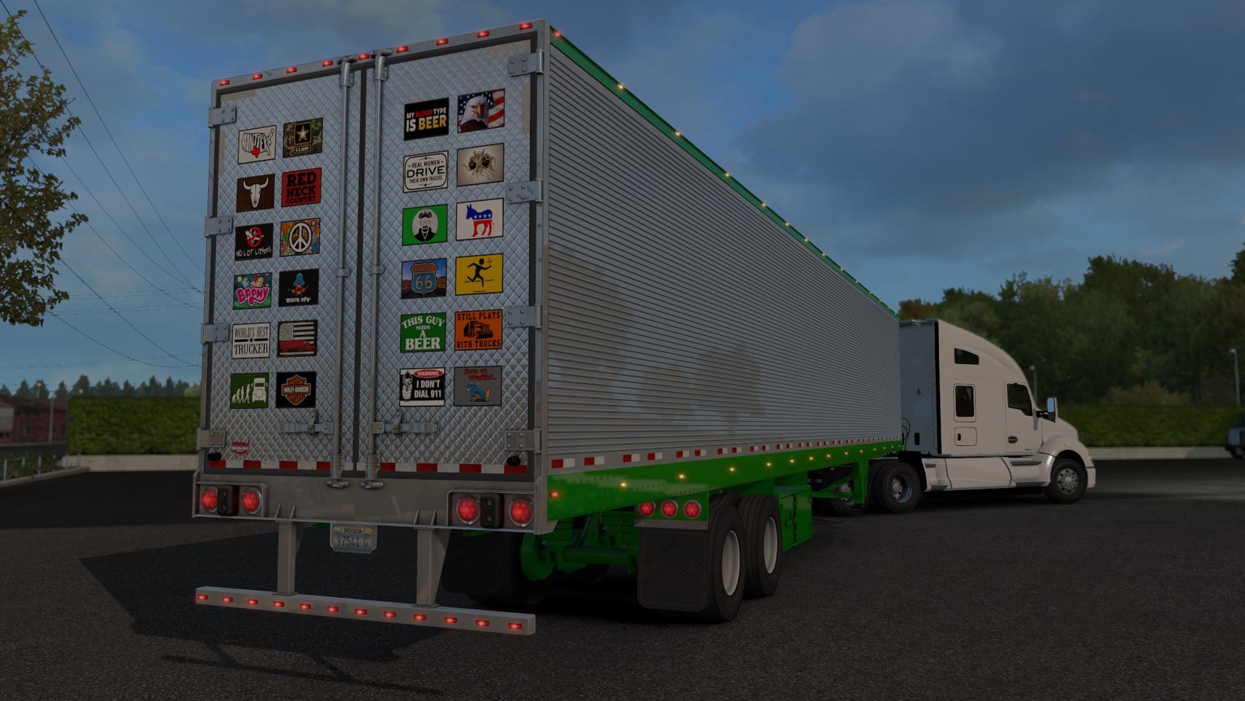 Update 1.6 available: - Mod updated for version 1.35; - Stock wheels are changed to standard. Perhaps this will reduce the required level of purchase for the player; - Added short tanks for the cooling unit; - Added the ability to install animated flags in the front and rear parts of the trailer, 4 flags are available; - Added the ability to install lights instead of reflective tape on the bumper; - Added a new chassis with four axles; - Added new options for cable boxes; - Added the ability to install additional equipment on the front wall (like standard trailers) and the Wabash logo on the door; - Increased the number of slots for stickers on the doors; - Added the ability to install rectangular lights on the cooling unit (claddnleft slot); - In tuning wings added lights, which cast light on the ground; - Added new stickers and skins. Mod adds a new one, based on the standard 53 'trailer, as well as one new load. Added as a completely new tuning, and tuning based on the standard, many elements of the trailer were recycled. The trailer is autonomous, the type of hitch is only one - a single trailer. Be careful that: 1) The trailer is only for purchase. Unfortunately, in freight market and traffic is not added. Maybe someday I'll do it, but I'm not sure about it; 2) All the bodies look the same, it's not a bug, it was well conceived; 3) The UV is new, skins for standard trailers will not work, but standard game skins have been adapted for this trailer. In the archive there is a template for drawing your skins; 4) Among the available skins there are skins that may contradict your opinions, beliefs, etc. etc. These skins will not be censored or deleted. I do not care that because of them you will refuse to use this mod. Credits: Chris Husky (Imperator3) |