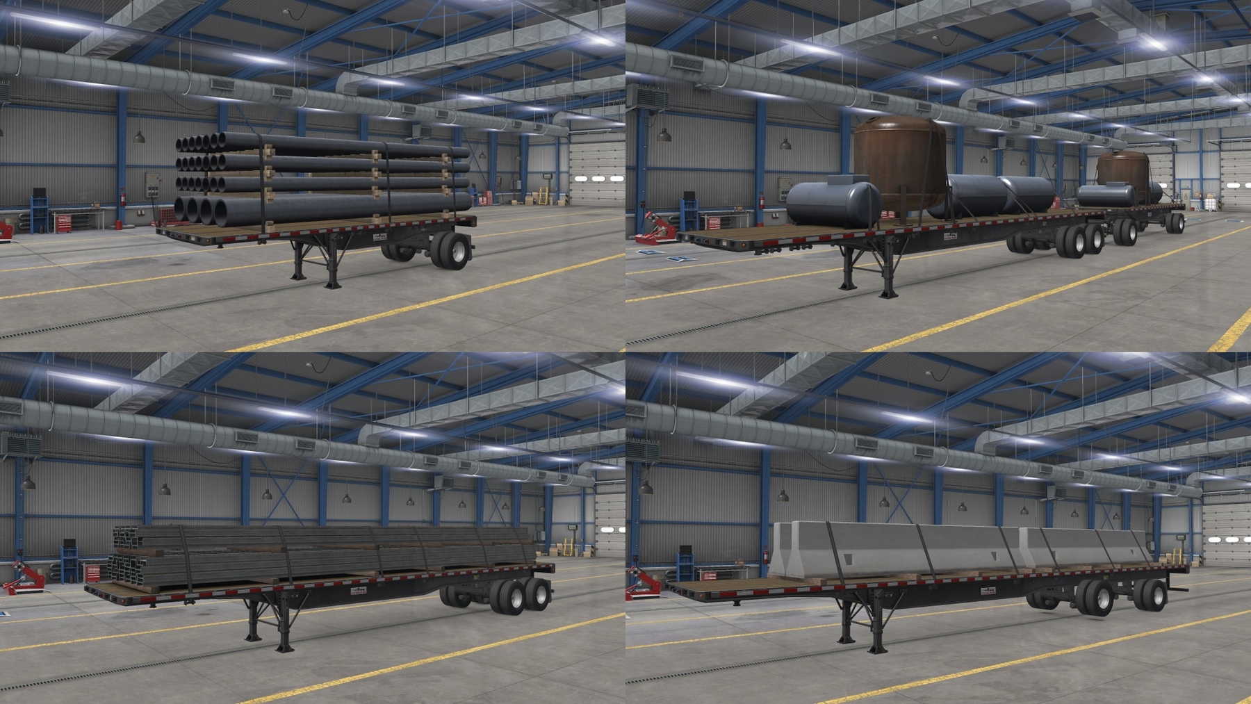 Changelog v1.3 (16 February 2022): - 2 cargo ported from ETS2 for lowboy trailers - 1 new variant of lumber beams cargo for flatbed trailers With this mod, you won't be hauling the exact same cargo anymore... This mod aims to add the so-much-needed variety to the flatbed cargo, providing a bit better experience when hauling flatbed cargo. The mod adds new variants to the original cargo, as well as brand new cargo (some of them are also ported from ETS2). Creator's notes (please read this): - The cargoes are set to spawn at the same companies as the other cargoes or their variants. So, you won't spot them on the freight market that easily. The cargo market for ownable trailers, on the other hand, is much richer with them. - When using cargo market for ownable trailer, the new variants can be easily distinguished - the original cargoes use their dedicated icon, while the new ones directly show them placed on your trailer. - If you see the same cargo with two (or even three) different weights, or if you see two different cargoes with the same weight, it's because of various limitations - for example, the gross vehicle weight limit is set differently in each country, and if you are using trailer with fewer axles, the game will also limit the cargo weight to the weight limit for that trailer. So, different cargo weights are not a problem of my mod - they're a problem of the game. - You would probably need to manually reset game economy to get these cargoes spawned in freight market. Use command "g_force_economy_reset 1" and reload your game. Note that it will return you back to your garage and will cancel your current job. - The mod should be put above the other cargo-reworking mods in the mod manager, because it overrides some of the original cargo files. - The new cargo might not work with modded flatbeds on its own. If this was the case, either you, or the mod developer, would need to add some definition files to this package to make it work. Credits: SCS Software for creating base models marekg304 for creating this mod Credits: marekg304 |