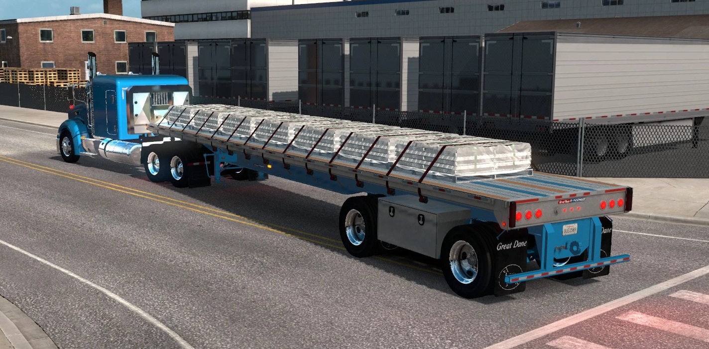 This Mod adds the Great Dane Flatbed trailer TRAILER SPECIFICATIONS – Standalone: Yes – Multilanguage: Yes – Axles: 2 Axles – Advance Coupling: Yes – Collisions: Yes – Color Selection : Yes – Colors : Red – Blue – Loads: 3 – Errors: None fully tested and functional Credits: Habdorn |
