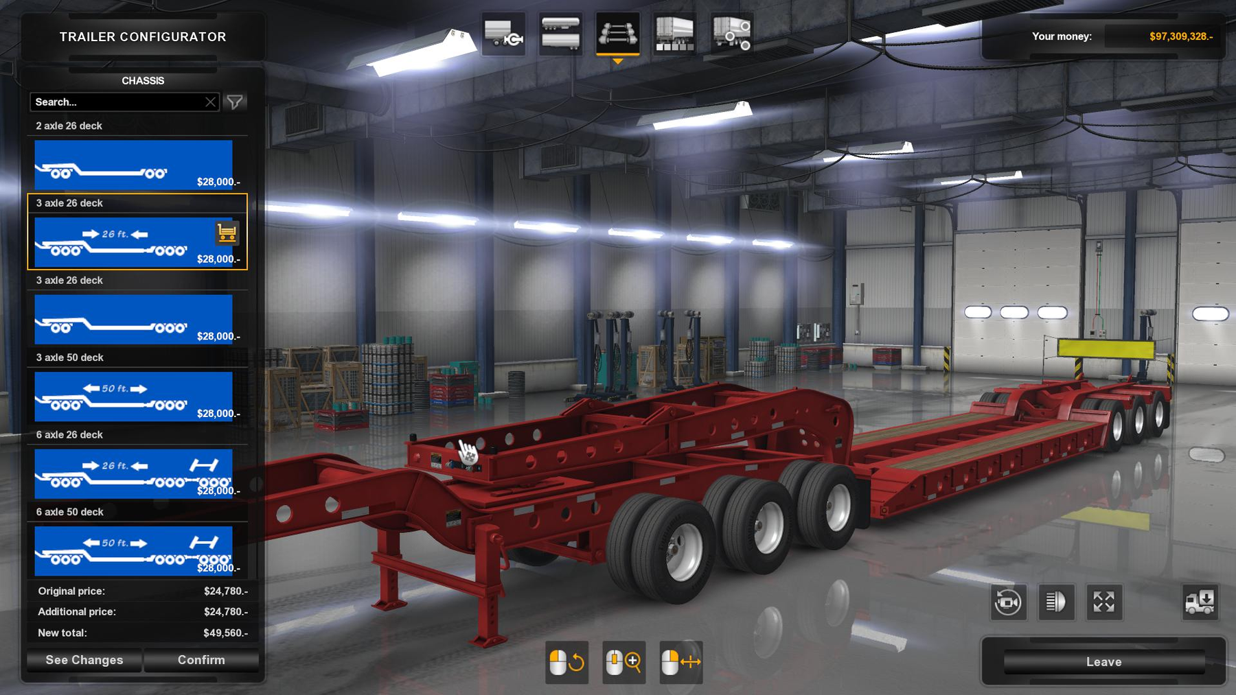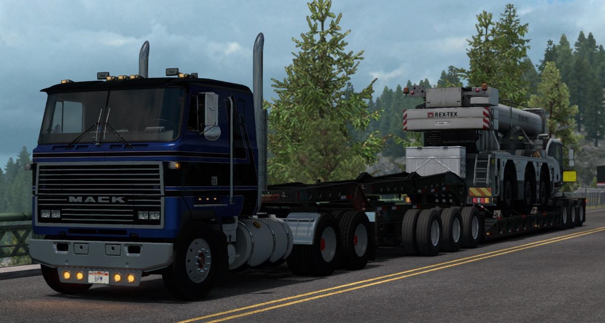 This mod makes the SCS lowboy trailers own-able and comes in 12 configurations. You can adjust the configuration of the trailers from the F7 menu, for configurations of the same axle count. Be careful with trailers from Oversize DLC, I cant guarantee that you can drive everywhere. Each cargo load has two separate weights: One standard (real) weight, and one that is Maximum weight for people who want a challenge.. Required DLC: - "Heavy cargo pack"; - "Special transport (Oversize)"; - "Forest Machinery". Credits: Virat8 |