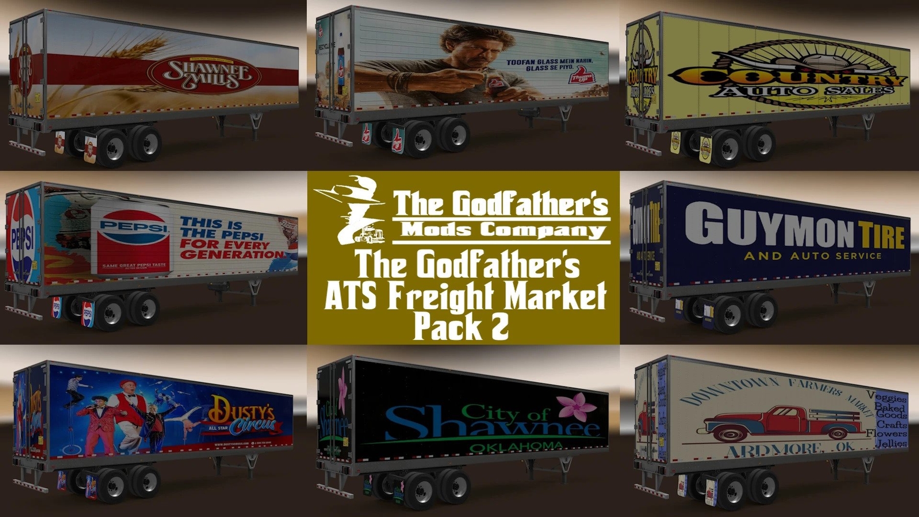 * The Godfather's Mods Company Brings to u his 2nd Freight Market Pack that gives to u 120 Skins of Real Life Company's & Branding for the 43ft SCS Reefers,Dry Vans & Insulated Trailers and will spawn at random in the Freight Market Jobs List Plus