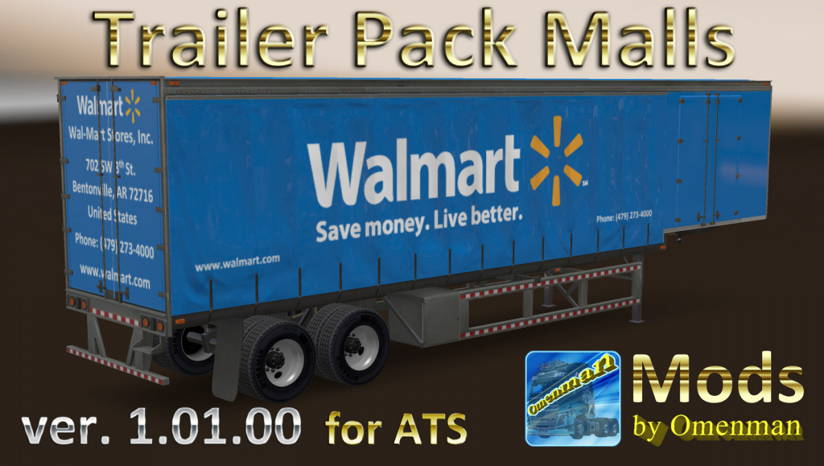 Mod of trailers with skins of shopping malls. In the package 23 company, 11 cargo and 15 skins on 4 trailers (Reefer, Reefer3000r, Box and Curtain): – Earth Fare – Food Lion – Giant Eagle – Harris Teeter – Home Depot – Hy-Vee – Jungle Jim’s – Lowe’s – Market Basket – Piggly Wiggly – Publix – Stew Leonard’s – Trader Joe’s – Walmart – Whole Foods All trailers are autonomous and included in the traffic. No support for cables. For version 1.31 Authors: SCS, Omenman Credits: Omenman |