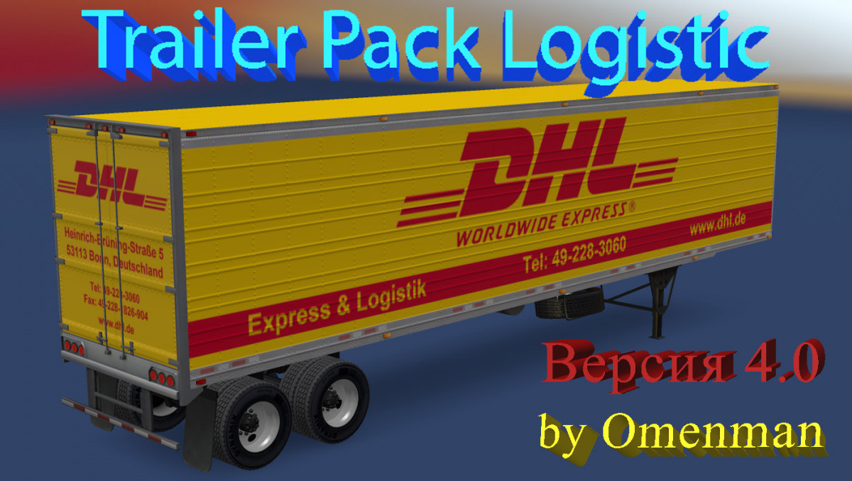Mod of trailers with skins of logistics companies. In the package 23 cargo and 32 skins on 3 trailers (Reefer, Reefer3000r and Box): – Alta-Trans – Autolight Express – Beef-Trans – C.H. Robinson Worldwide – DB Schenker Logistics – DHL – DSV – Echo Global Logistics – EuroTruck – Express Trade Capital – FedEx – Fesco – Gefco – Kuehne & Nagel – M-Transline – Profi Cargo Service – Royal Cargo – TransContainer – UPS – Autologistic – Autotrading – Autofors – Baikal-Service – Vash gruz – Vezu vse – Business Line – ZhelDor – Whale – Mitridat Odessa – PEC – Sovtransauto – Energy Changes in version: 1. Updated the skins of trailers. 2. Added trailer Reefer3000r. 3. Trailers are synchronized with the same-name mod for ETS-2. 4. In the future all mods for ETS-2 and ATS will be updated in parallel. All trailers are autonomous and included in the traffic. If you find any missed errors, report it! For version 1.30 Credits: SCS, Omenman Credits: Omenman |
