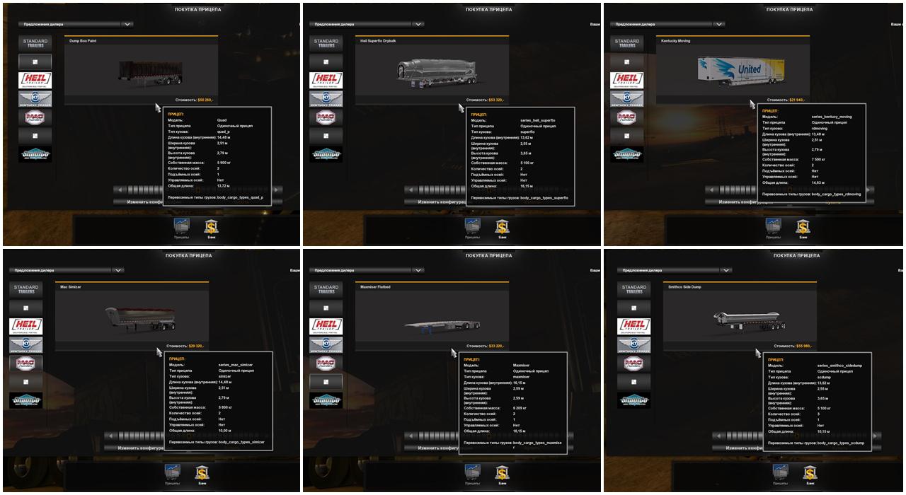 In a pack of 6 trailers purchased in the property: Reitnouer Maxmiser (from B4RT) SmithCo Side Dump (by Stahl) Heil Superflo Drybulk (from KeithD) RD Moving Van (from B4RT) EAST 4 Axle Dump (from AMT) Mac Simizer Dumper (by B4RT) Each trailer is registered in a separate slot Some trailers in traffic Present in agency orders Own loads Tuning Cable support and much more… Assembled in Pack: Koljan Credits: Koljan |