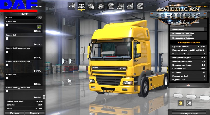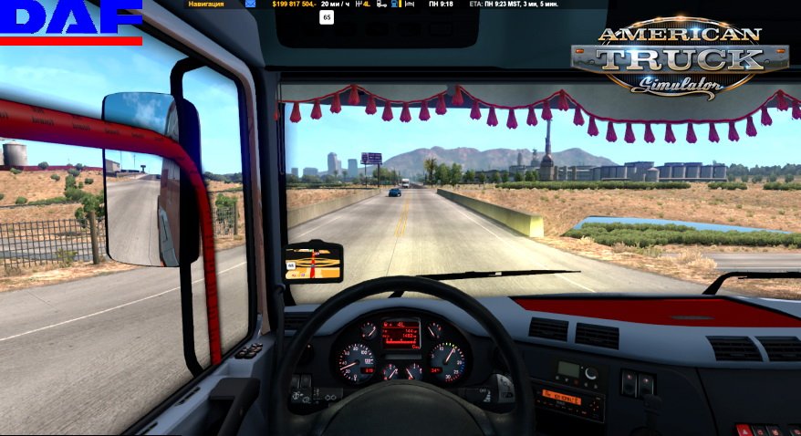 - independent truck model - high detailed 3D model - high detailed detailed exterior - high detailed detailed interior - the model has own sound - the model has own wheels - the model has own interior - present the illumination of arrow speedometer and tachometer - the character is correctly sitting in the driver's seat1 cabin - the choice of wheels configuration - the choice of color body, metallic - correct position of the DAF logo - Working headlights, brake lights, tail lights, front and rear turn signals, steering wheel and reverse signals; - The correct position of the player; – interior accesories configuration – There are external tuning - Supports all major functions of the game - Support for DLC Cabin Accessories – Various accesories: mirrors, drivers plate, cabin lights, sun visor, grill, tanks, exhaust - buy from Peterbilt dealer Tested on game version 1.31.x Credits: 50Keda, Piva, Aleksey Ilkiv |