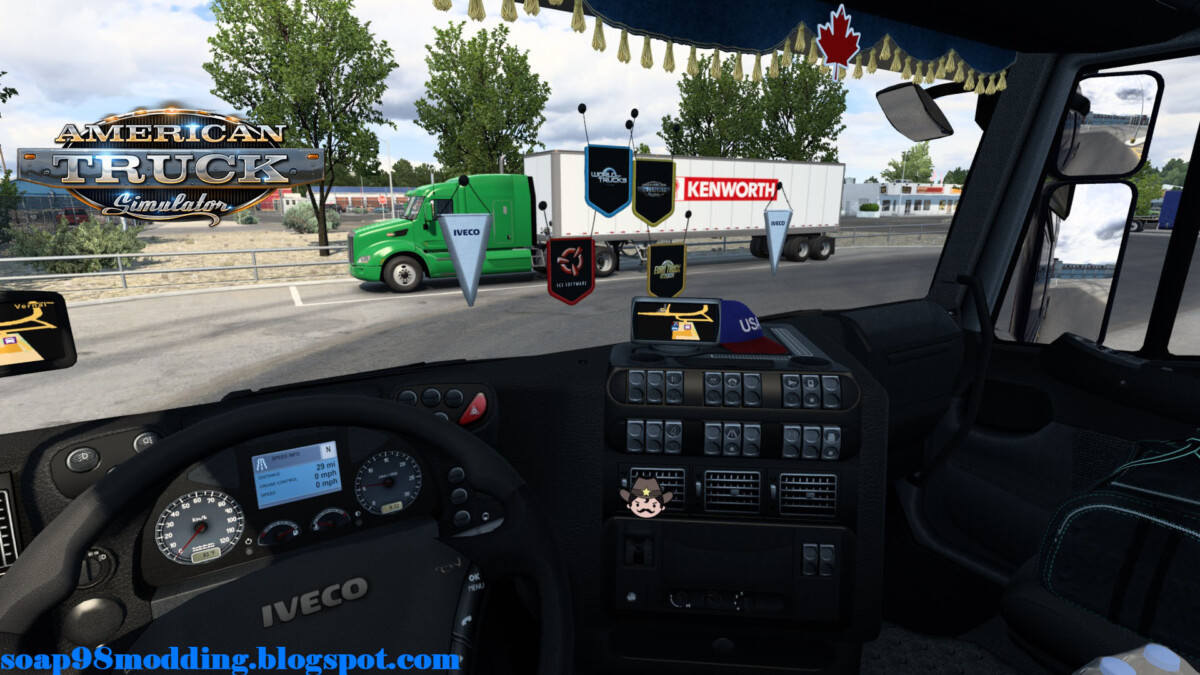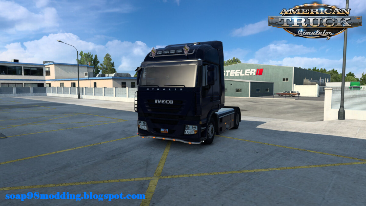 Converted from ETS2 – the choice of chassis (6 types) – the choice of cabins (3 types) -Adapted cables in ATS (Blue&RED) -Cabin Accessories – Working headlights, brake lights, tail lights, front and rear turn signals, steering wheel and reverse signals – Tuning and accesories present – Interior accesories configuration – buy from Access Mod dealer -support occulus VR -Compatibility Patch for Iveco Stralis by Shumi Note: be sure to choose the named “[ETS2]” when tuning the wheel, rim, nuts etc. Tested on game version 1.43.x Credits: soap98 Credits: soap98 |