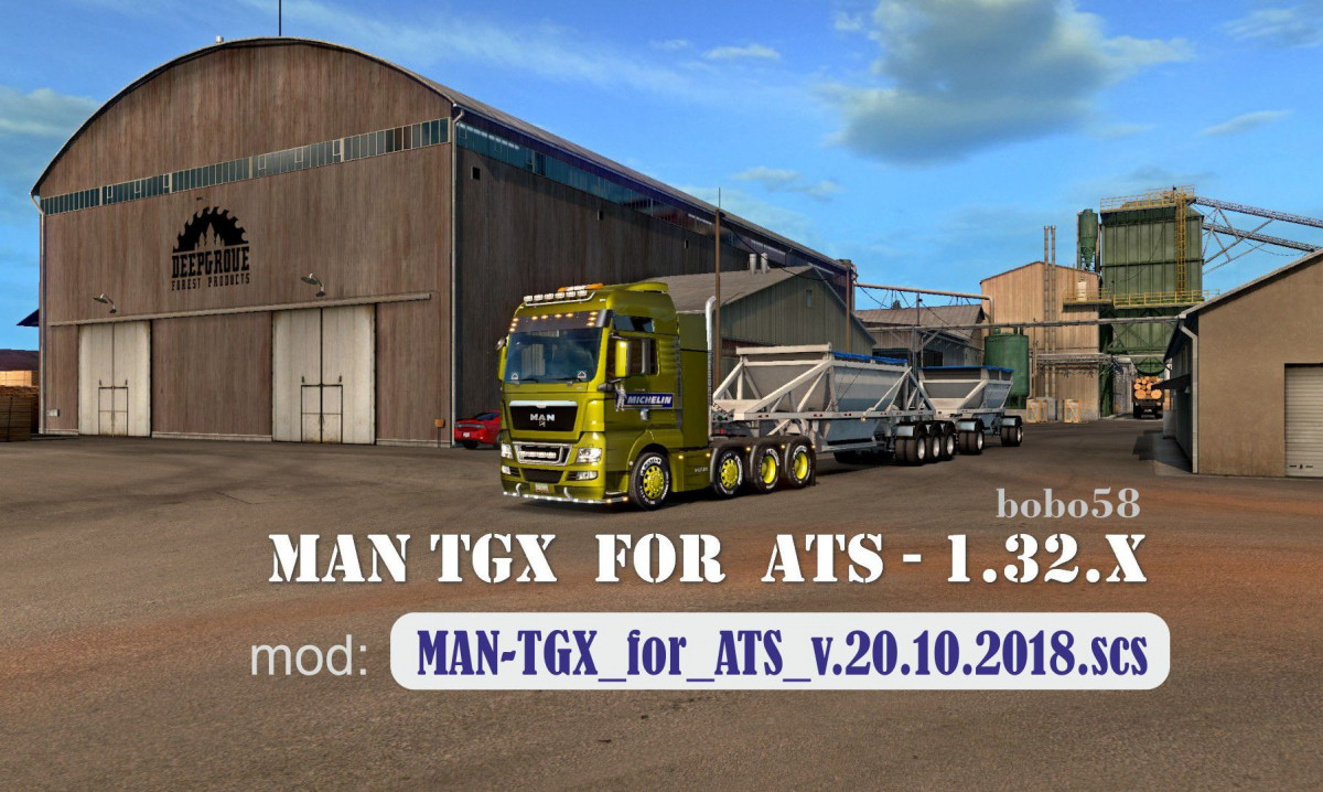 American Truck Simulator 1.32.x mod: MAN-TGX_for_ATS_v.20.10.2018.scs – MAN TGX Truck for ATS This mod adds MAN TGX truck (SCS) in ATS 1.32.x Truck MAN TGX can be bought from all dealers ATS: – Kenworth – Peterbilt – Volvo bobo58 / 20.10.2018 Credits: bobo58 Credits: bobo58 |
