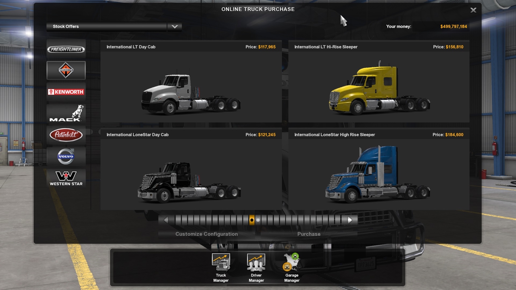 v1.2: Added new International 9900i Eagle trucks v1.1: removed 2 international lonestar trucks from mod dealer as they no longer exist in the current game as of 12/16/2021 game version 1.43.2.9s v1.0: Fixed Missing International LT Trucks This Mod Unlocks All SCS Trucks, it also Levels you to lvl 28 if you are not already there and makes All SCS Trucks available in the Mod Dealer. Includes the Missing International LT Trucks. Added new International 9900i eagle All Trucks Updated as of 3/24/2022 Game Version 1.43.3.3s Original Mod by: K-Dog Credits: ovrdrive5868 |